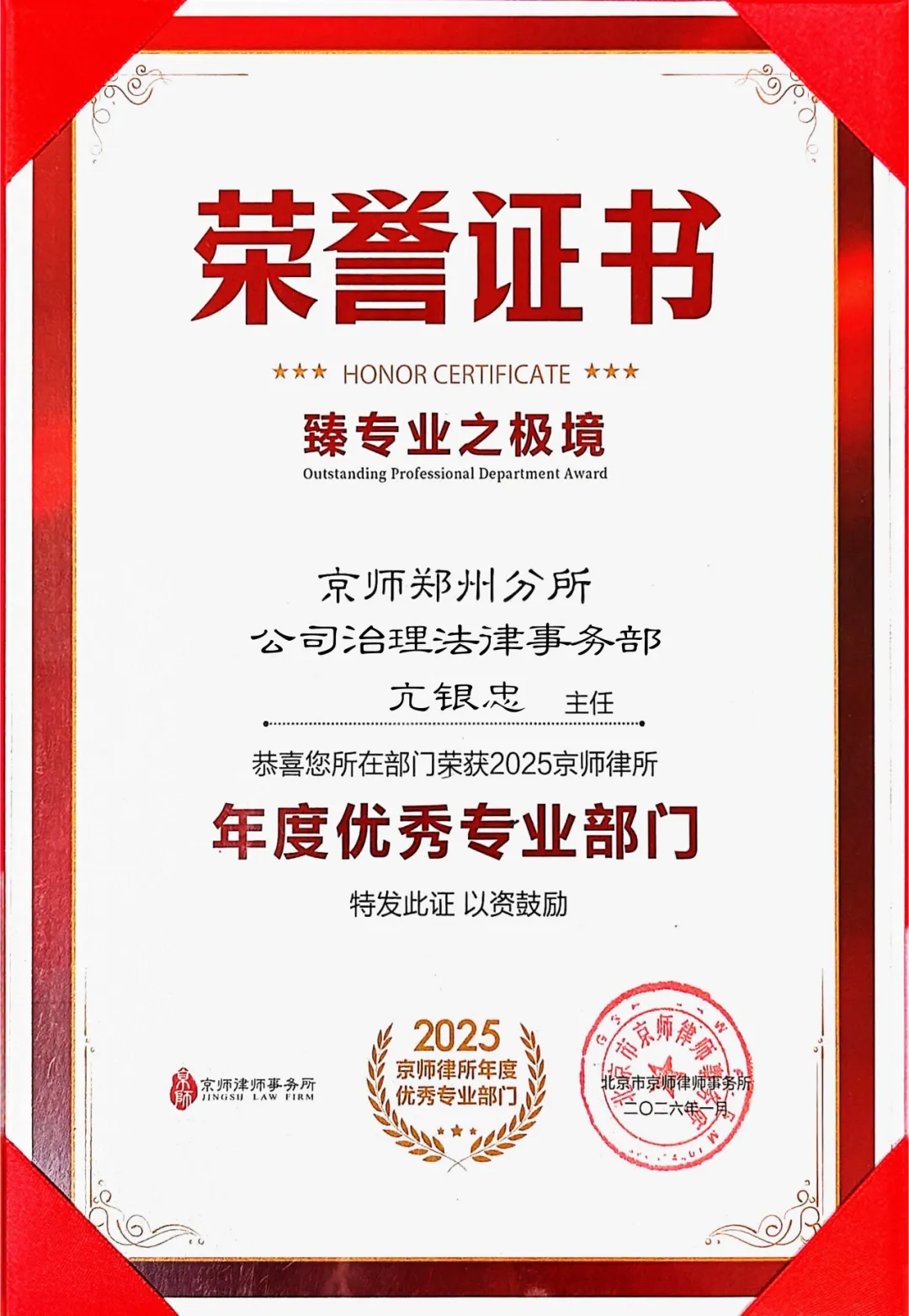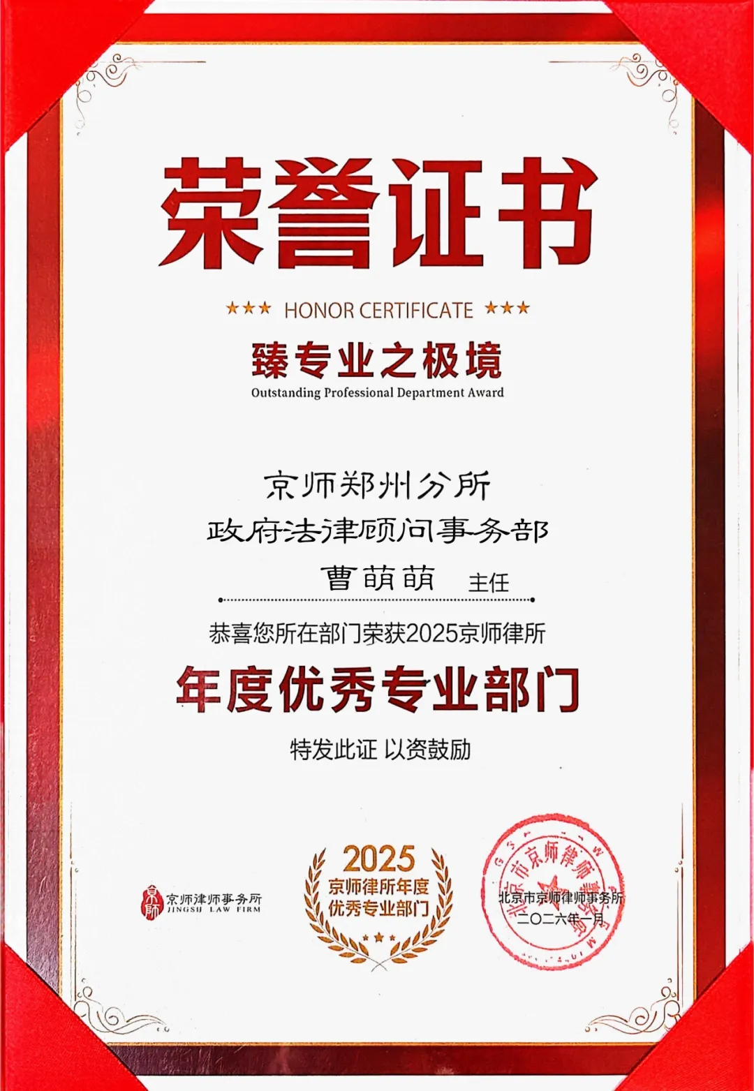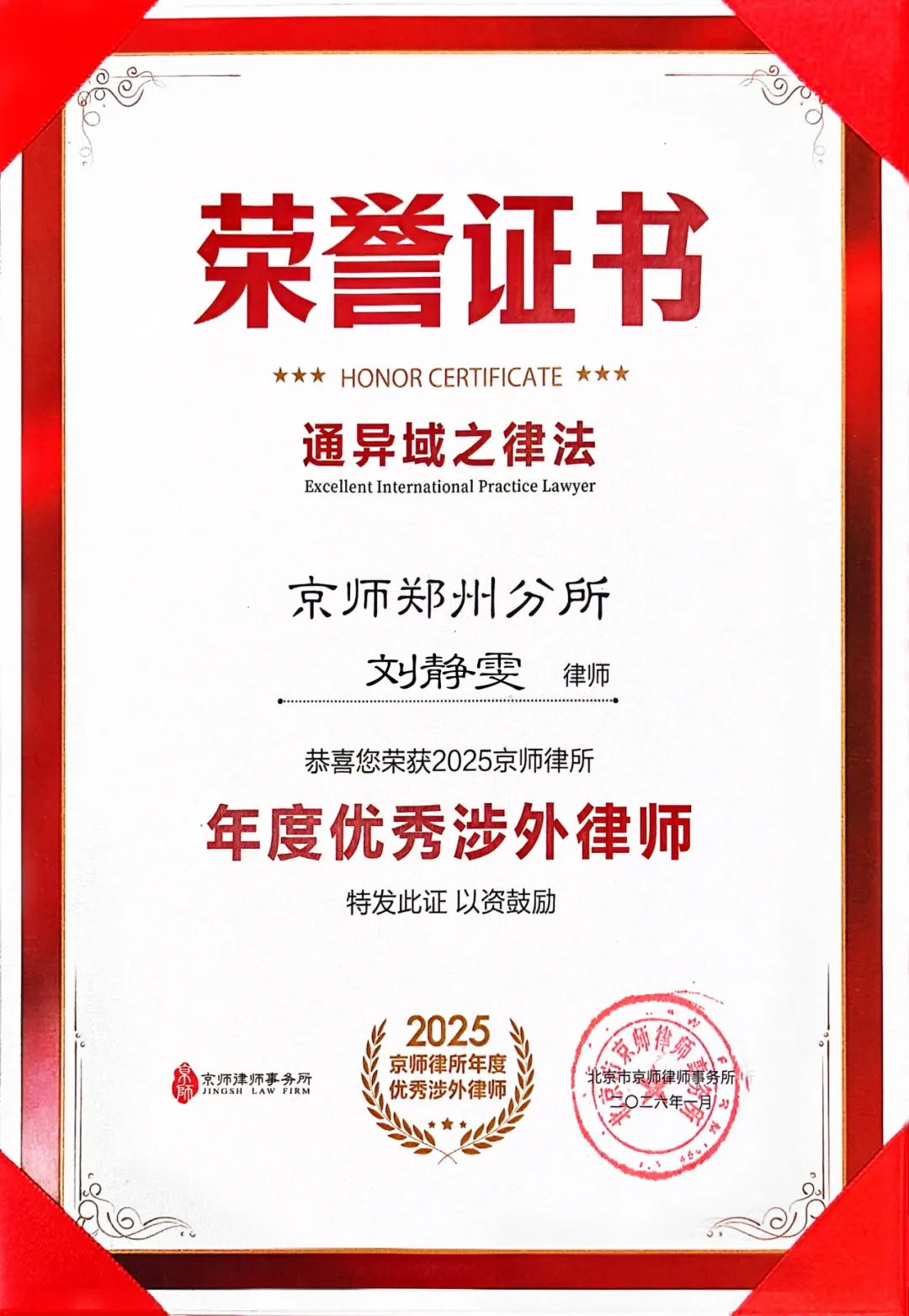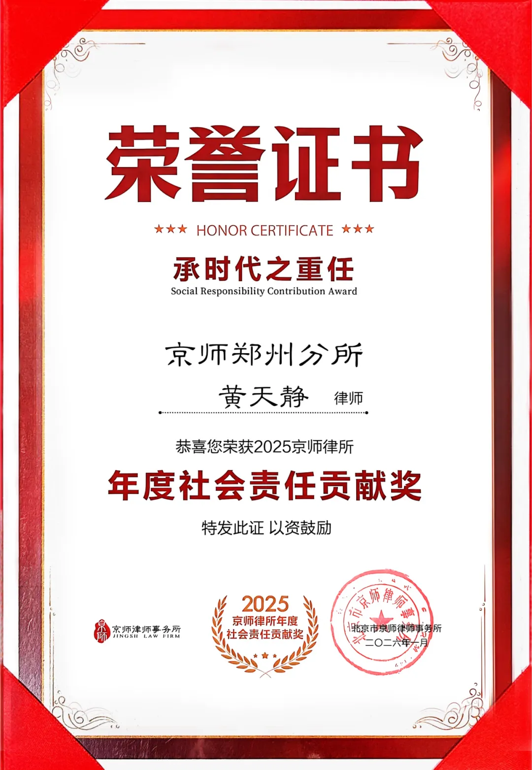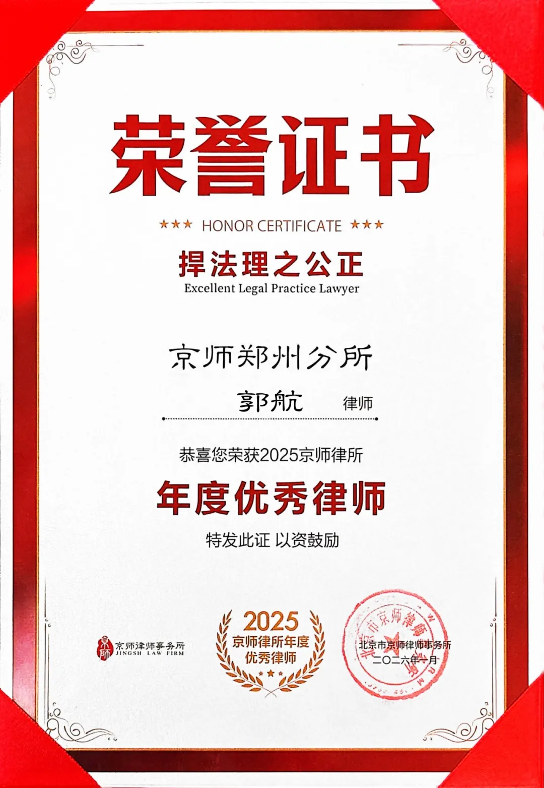 每一份荣誉,不仅是对个人能力的认可,更是对京师郑州律所整体专业实力与社会责任感的集中彰显。