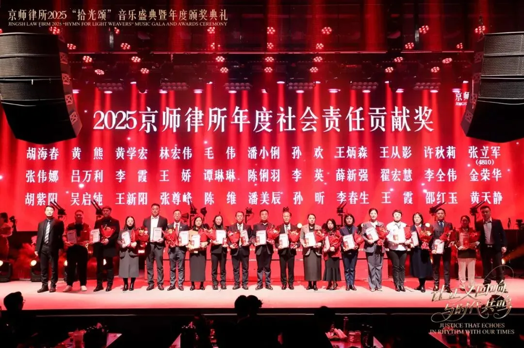 拾光而颂,致敬不凡,心怀炽热,光芒盈澈。2026年1月24日下午,“让正义回响,与时代共鸣”京师律所2025“拾光颂”音乐盛典暨年度颁奖典礼璀璨启幕。