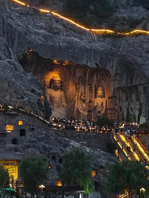 逛的话,分白天和夜游,俩时段各有讲究,别瞎跑。白天逛,重点是 “看懂不瞎瞅”:早上 9 点从北门进,先去租讲解器(大石门左侧,40 块钱一台,含儿童模式),别信门口野导游说 “50 块带你看隐藏窟”,都是忽悠。先逛西山石窟,卢舍那大佛别只站跟前拍,往伊水边退 100 米,手机横过来开全景,能把佛、伊水和远处的香山寺都框进去,上午的阳光不刺眼,佛的衣褶都能拍清楚。