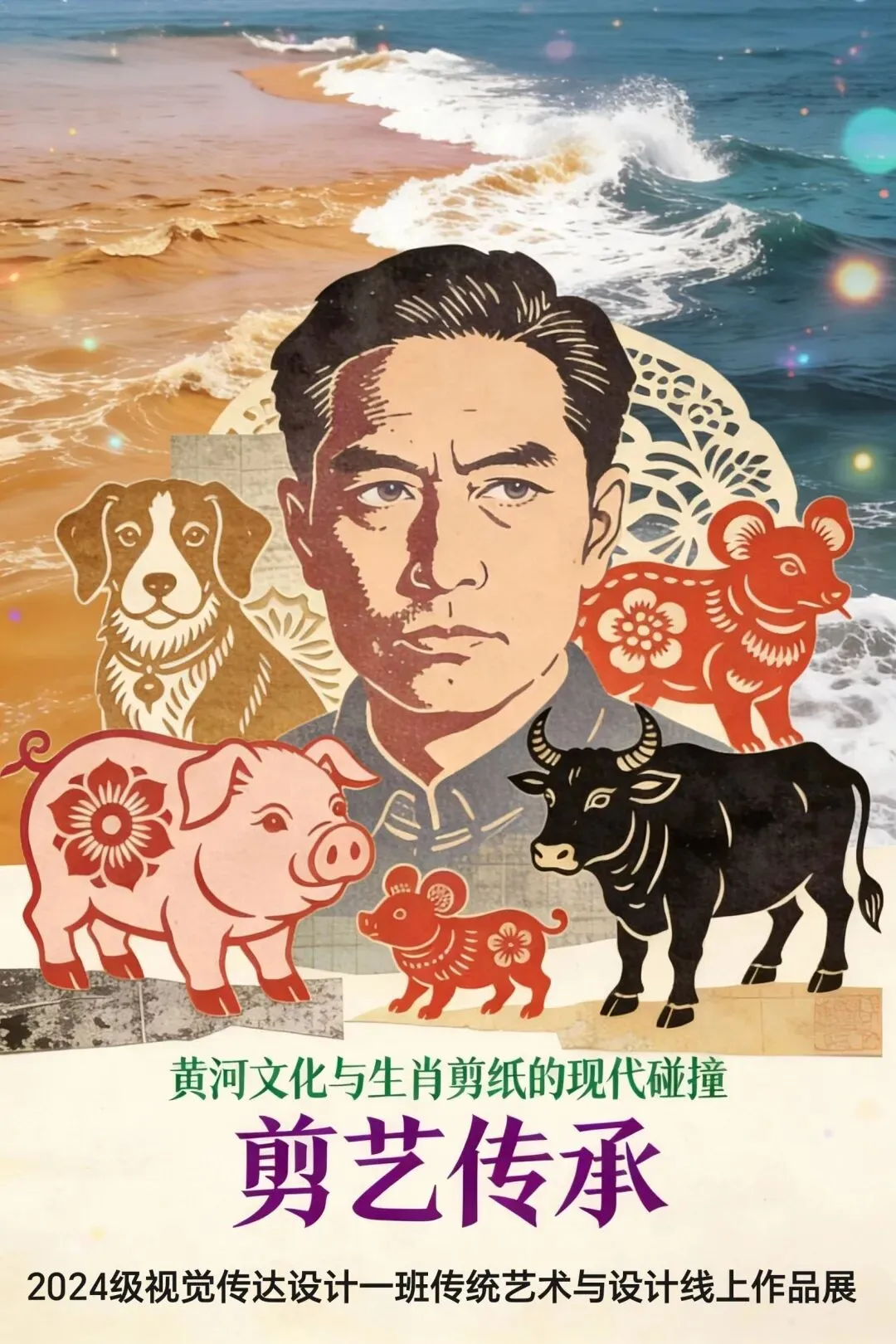 方寸红纸,叠出万千气象;一把剪刀,裁出古今交融。至此,2024级视觉传达设计1班“传统艺术与现代设计”多层剪纸作品展即将落下帷幕。 从生肖的灵动吉祥,到黄河的雄浑壮阔,再到肖像的鲜活传神,同学们以多层剪纸为桥梁,让传统非遗技艺与现代设计思维碰撞出璀璨火花。每一层纸张的叠加,都是对文化传承的深度探索;每一道刀痕的刻画,都是对创新表达的大胆尝试。 感谢各位莅临与品鉴。愿这场展览,能成为一颗种子,让更多人看见传统艺术的当代生命力,也期待未来有更多年轻的设计者,以匠心为笔,以文化为墨,在传承与创新的道路上,步履不停。