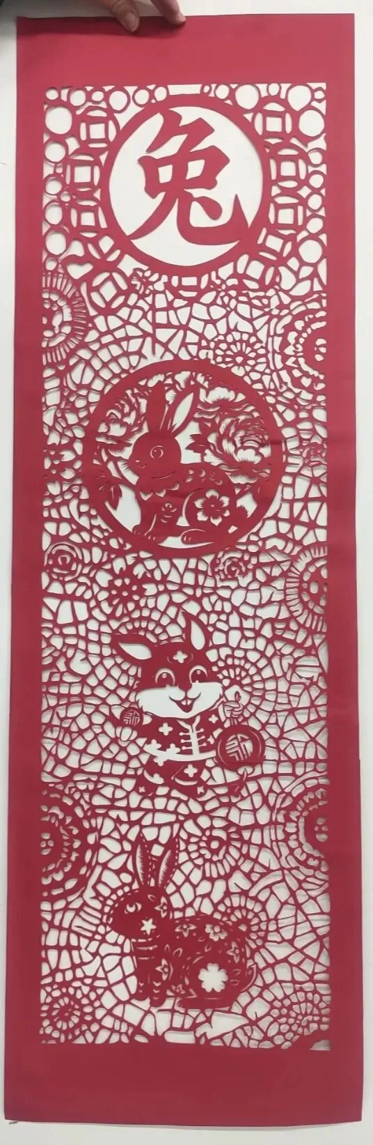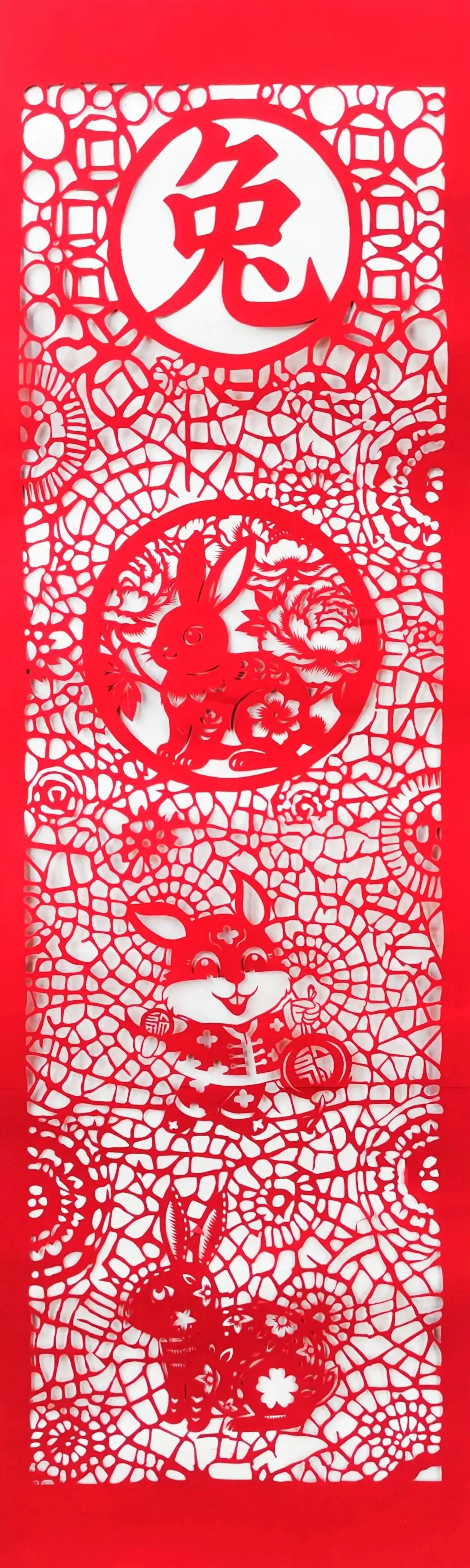 朱红纸纹缠玉兔,剪锋镂出玲珑影,一帧生肖藏尽兔年祥瑞意。