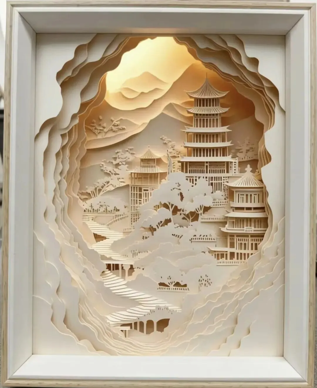 层纸叠出云山境,一框藏尽瑶台春,光影里见江南意。
