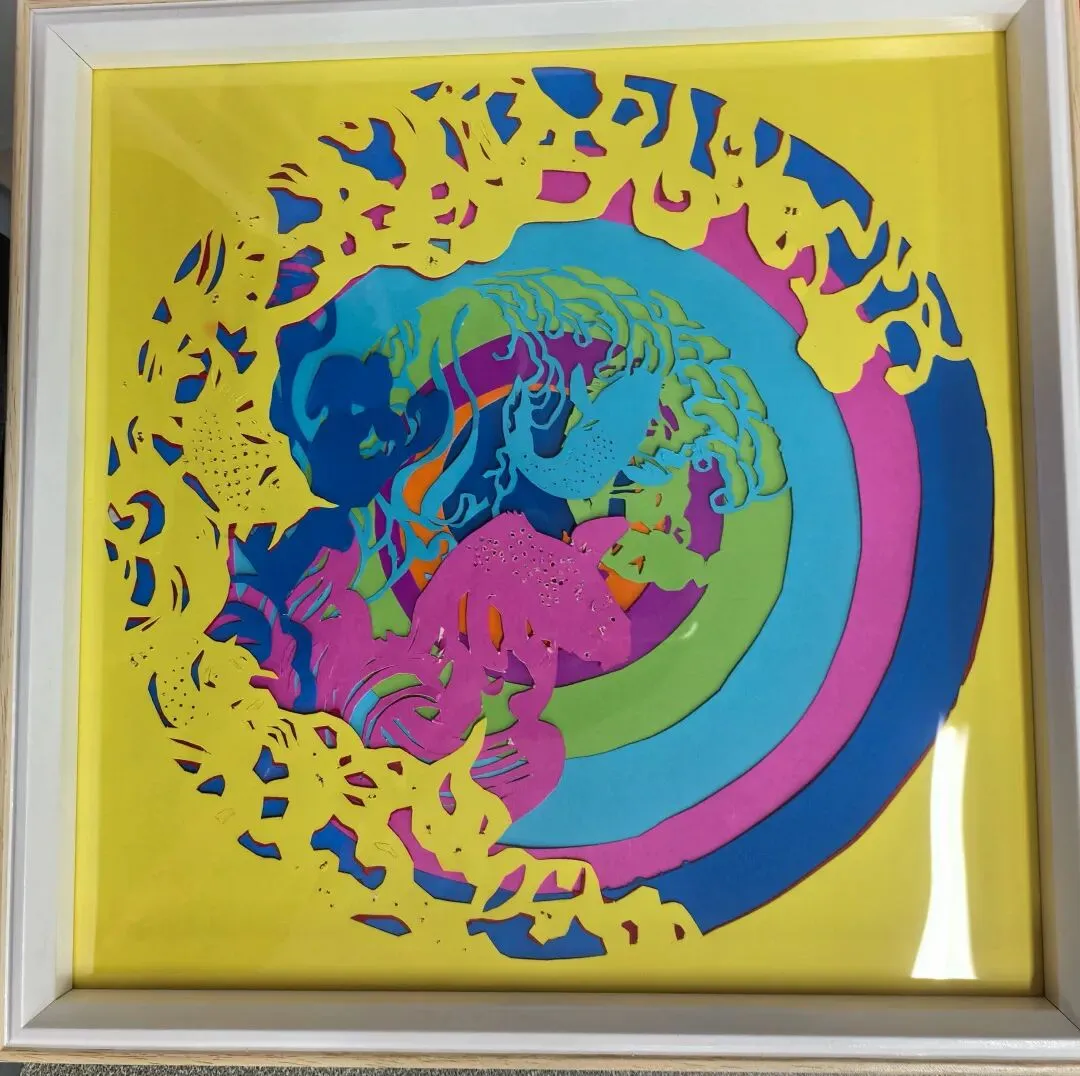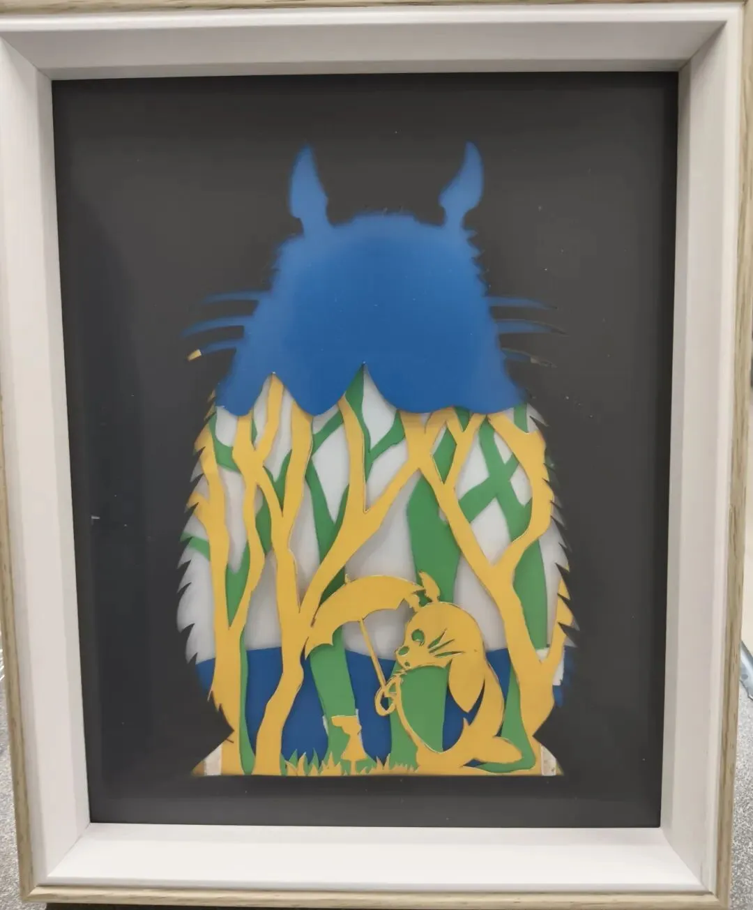 用多层彩卡纸切割拼贴打造立体效果,精准还原角色经典外形,是手工纸艺与动漫IP结合的创意装饰作品。