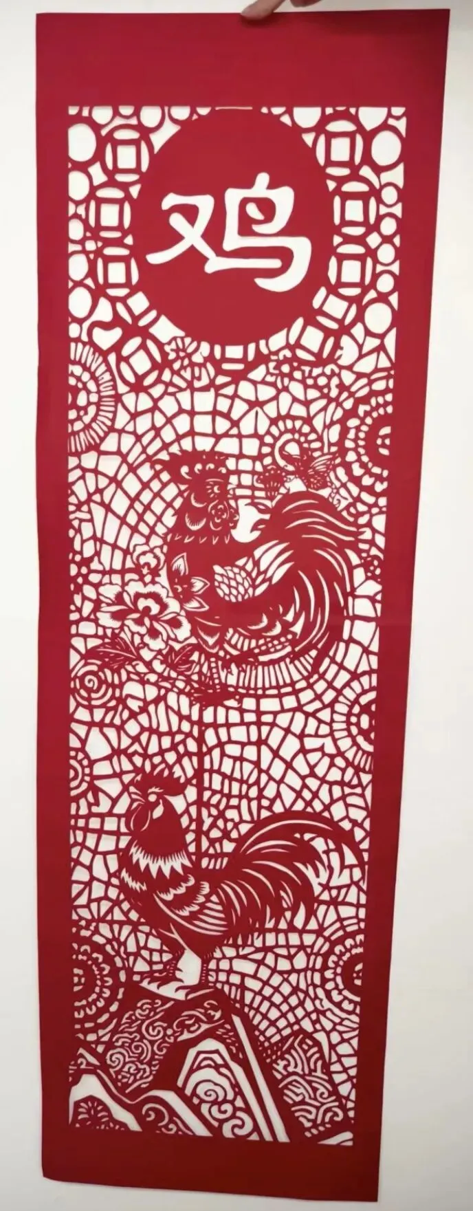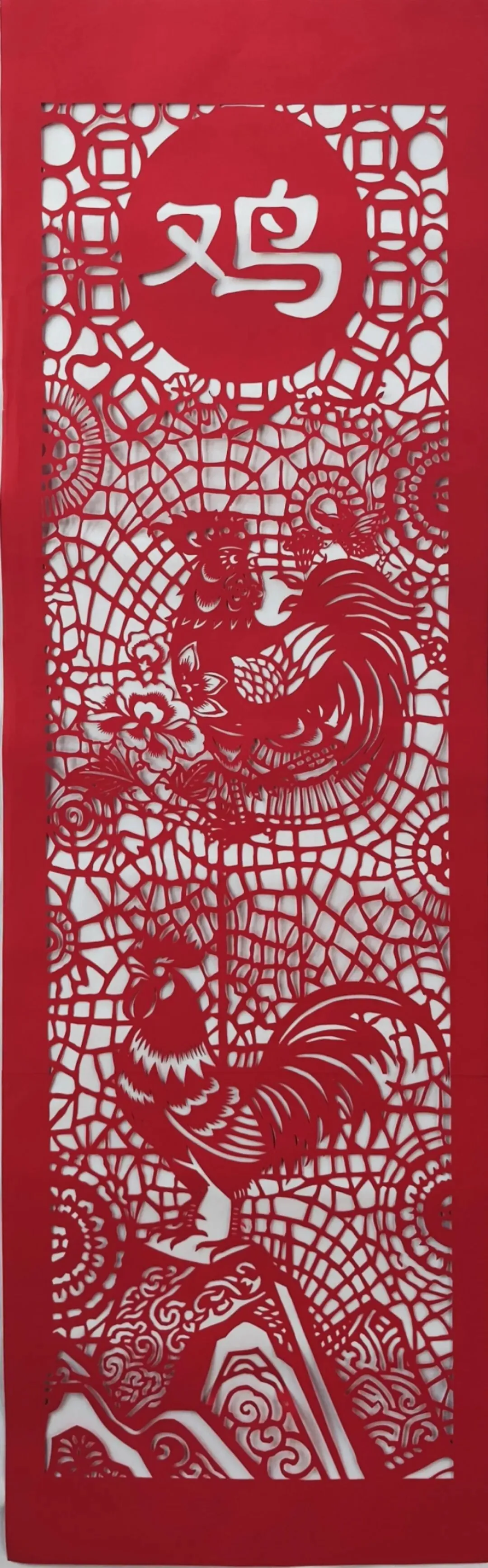 红剪雕金鸡,借酉鸡报晓、吉祥纳福的意象,颂生肖鸡的祥瑞与生命力。