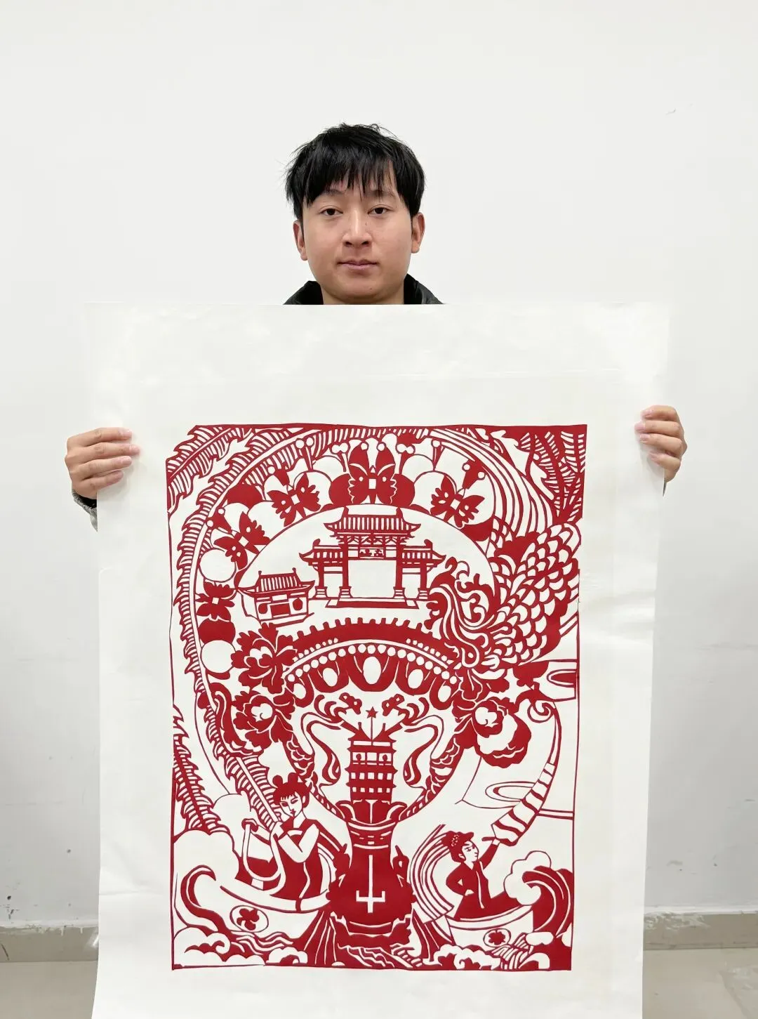 红纸裁作洛城韵,仙影凝成华章纹。一笔镂刻神都的亭台错落,一剪勾勒洛水的仙踪缥缈,牡丹香绕瑶池宴,古韵藏于方寸间,这抹红,是洛阳的仙风,也是千年的文脉。