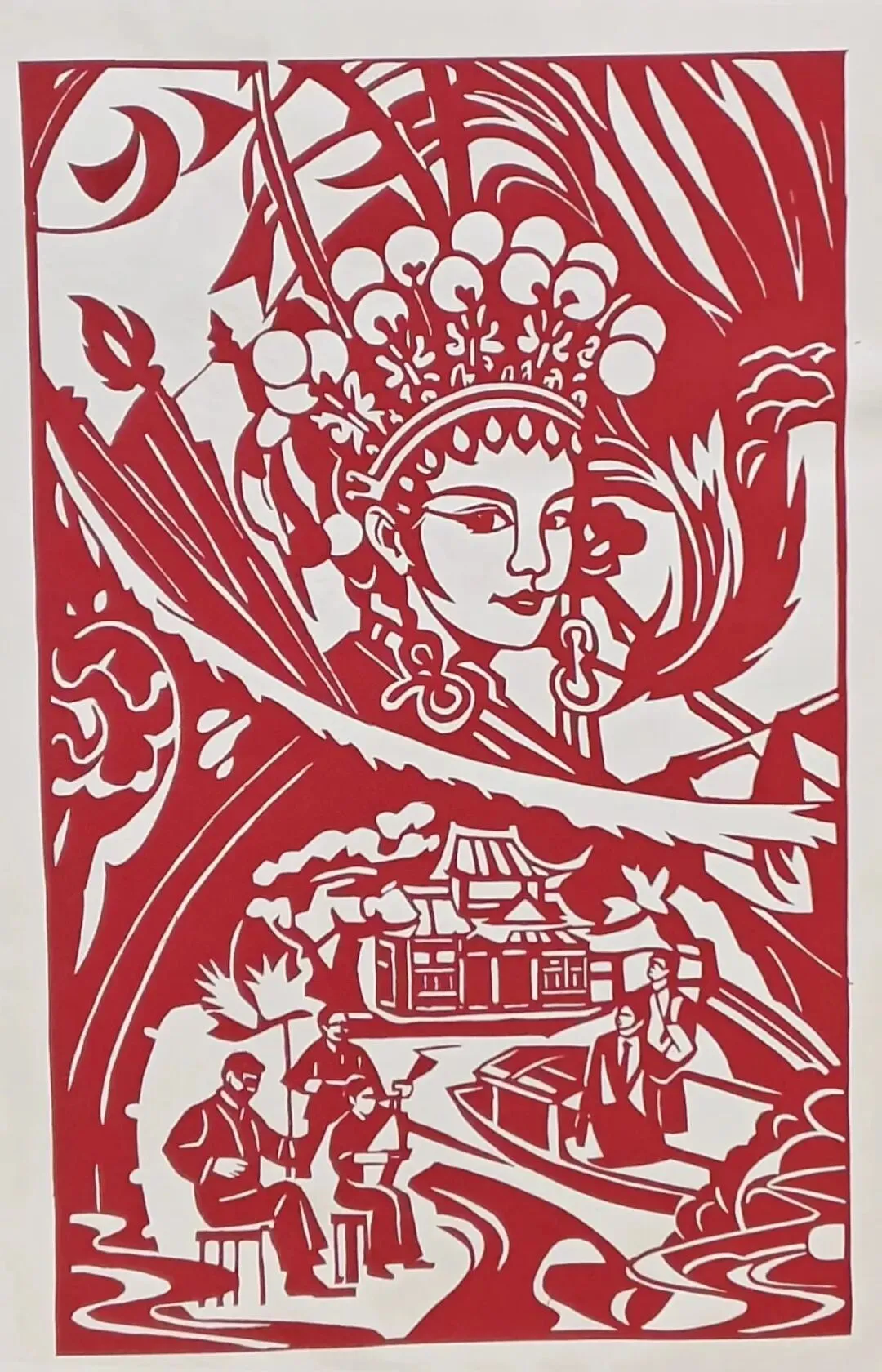 梨园水乡韵悠悠,红纸裁作梨园景,水乡情凝刀尖上。非遗剪纸融戏曲风华与江南水韵,一剪一凿,皆是东方美学的鲜活传承。