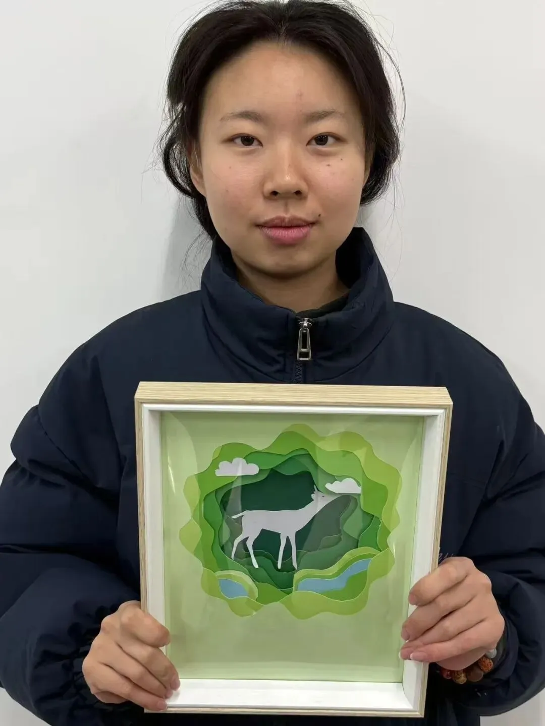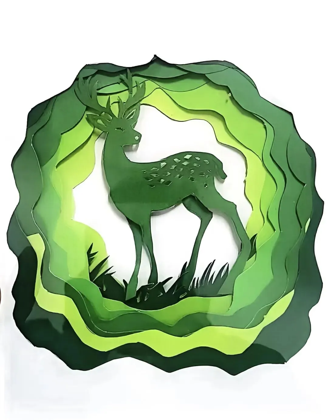 层叠翠影环灵鹿,纸韵生姿藏野趣,一刀一剪绘森间诗意。