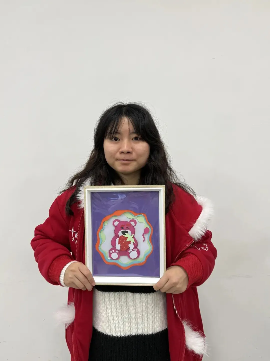 以粉色小熊与草莓为核心,用紫底彩环的梦幻色彩搭配,勾勒出充满童真甜趣的治愈画面。