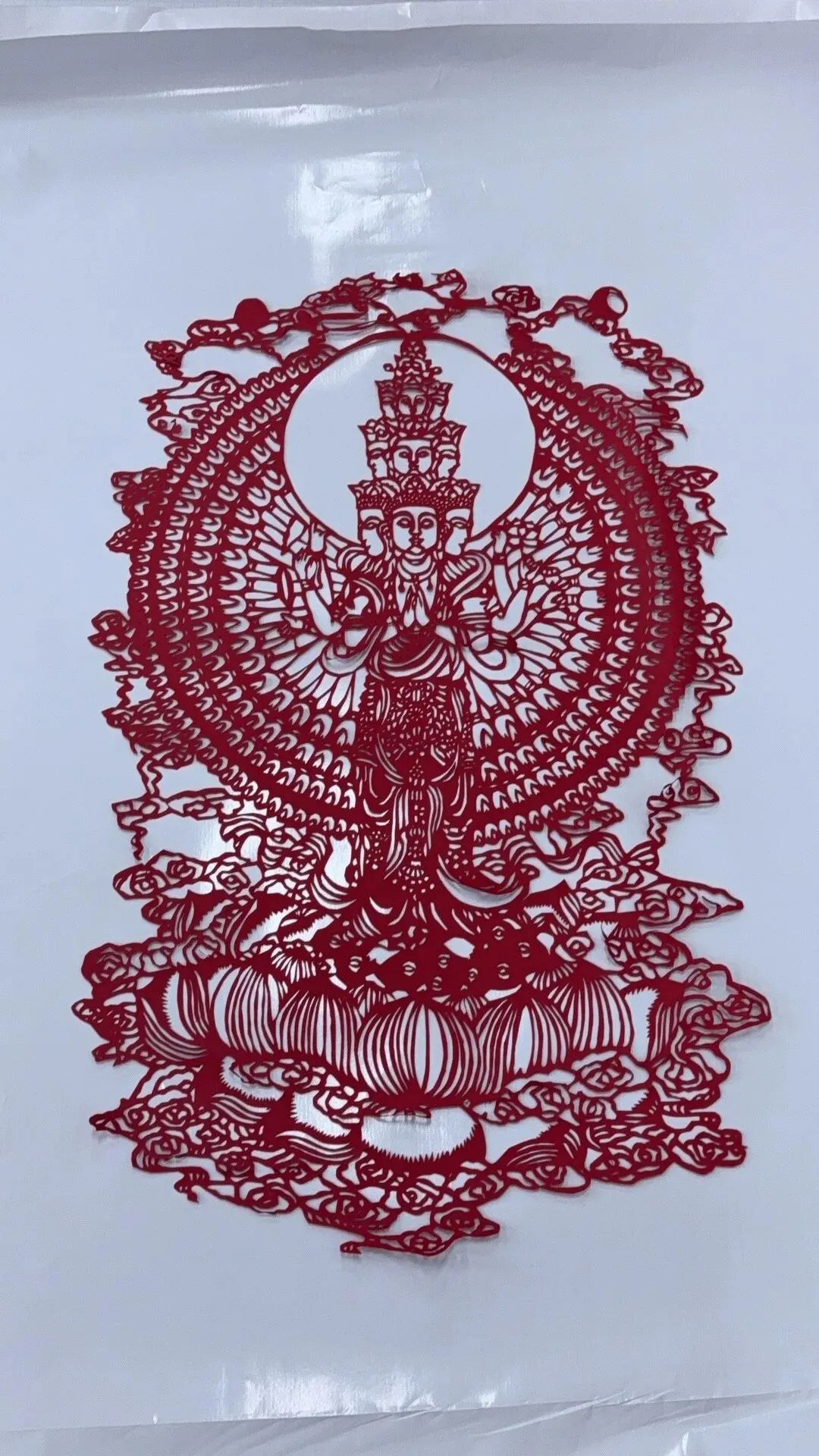以玲珑剪纸为骨,慈悲法相为魂。红纸细刻尽显非遗技艺之精,庄严造像暗藏文化之韵,融工艺与信仰,传递平安护佑的美好祈愿。
