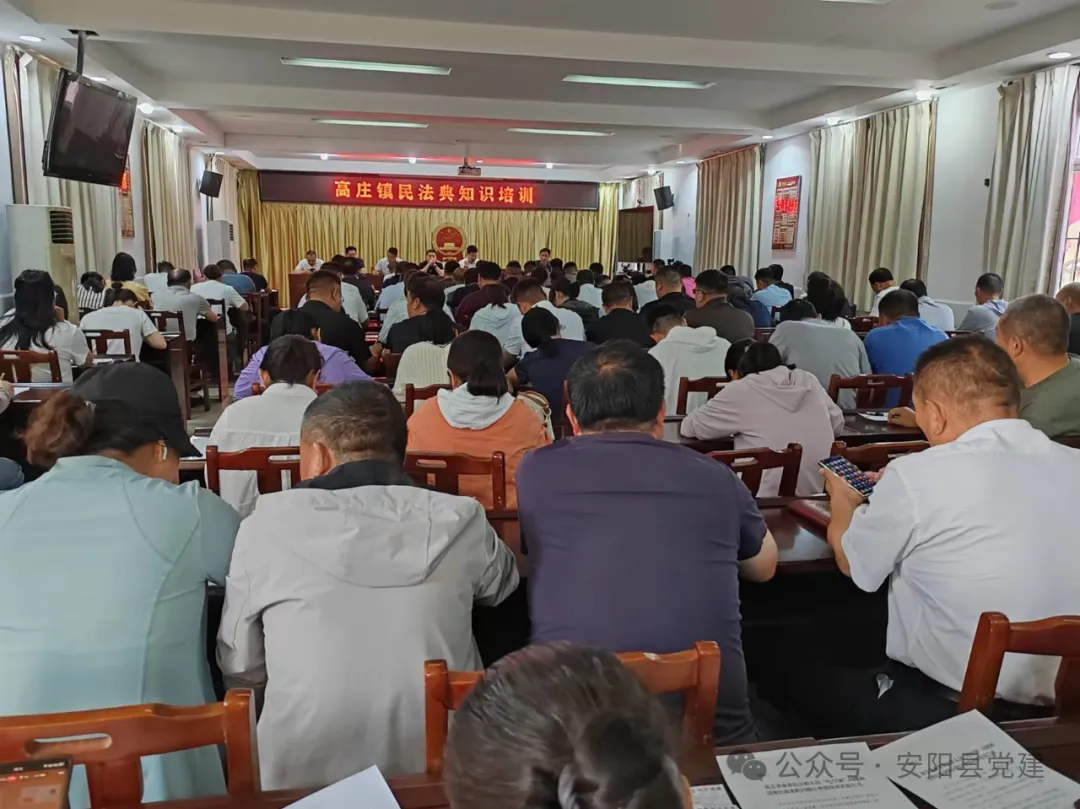 5月20日,高庄镇开展民法典知识培训,镇领导、机关干部、村党支部书记等参加了培训,会议重点围绕《中华人民共和国民法典》婚姻家庭篇和《中华人民共和国家庭教育促进法》进行讲解,要求各村、相关部门开展群众喜闻乐见的普法宣传活动,帮助群众逐渐养成学法、知法、守法、用法的良好习惯。