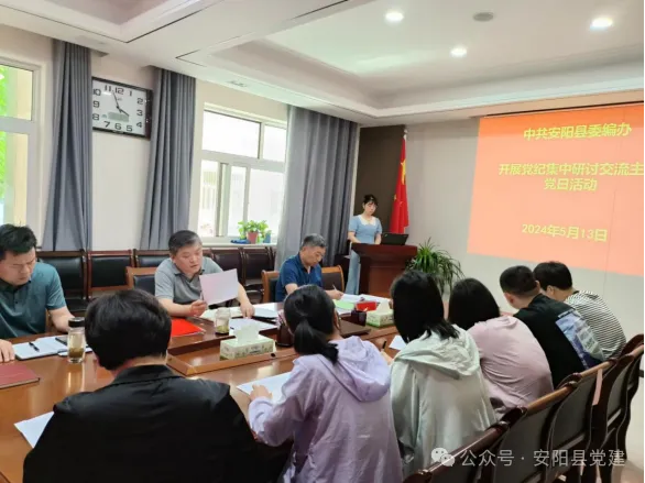 为深入开展党纪学习教育,切实增强党员干部的廉政意识、纪律意识和规矩意识,推动党纪学习教育工作走深走实、入脑入心,5月13日,县委编办组织开展党纪集中研讨交流主题党日活动。