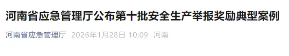 根据《河南省安全生产领域举报奖励办法》,举报事项经核查属实且符合奖励情形的,最低奖励1000元。现将第十批典型案例公布如下: