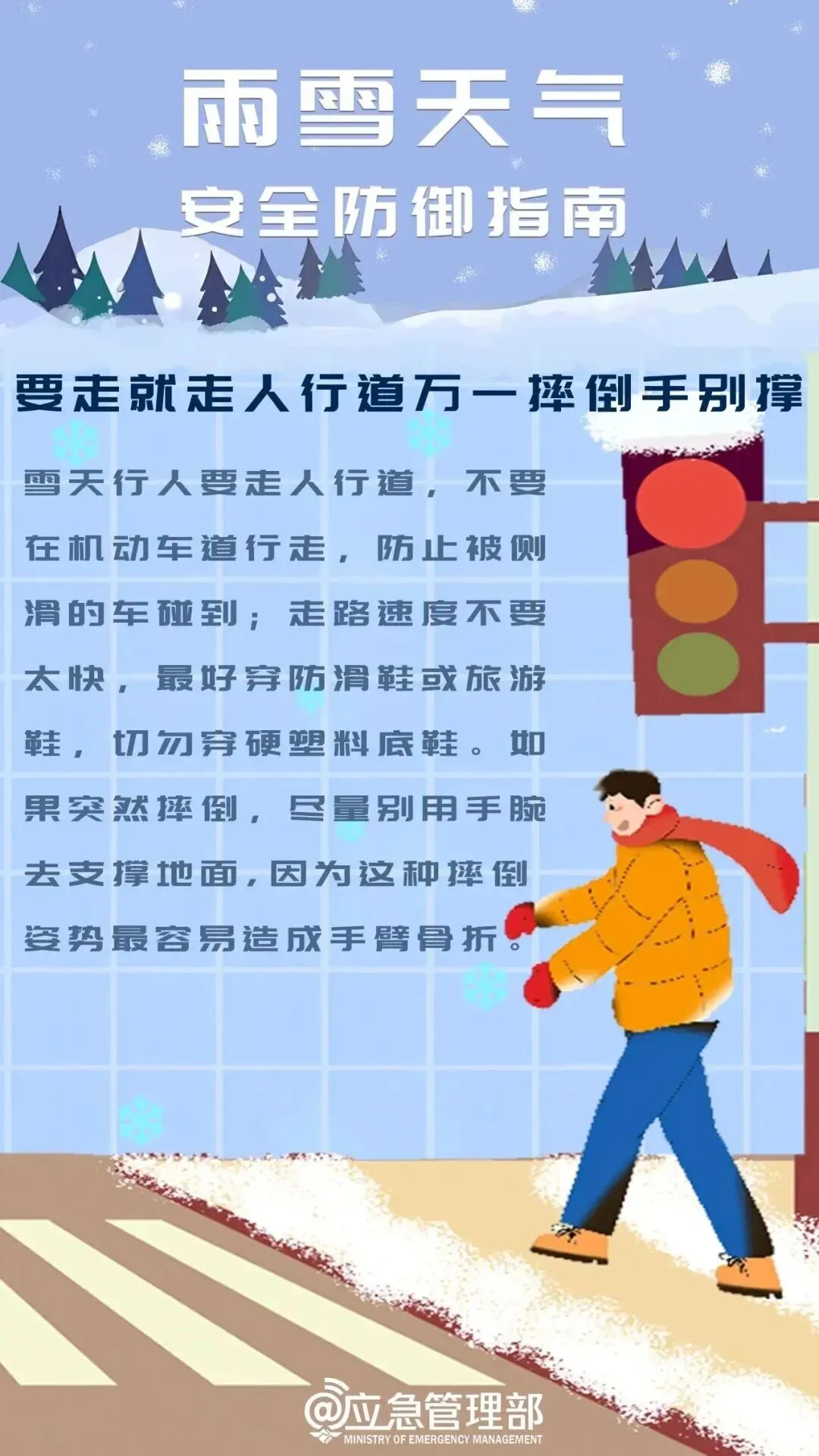 3.行人减少外出,必要外出时尽量少骑自行车,注意防滑。