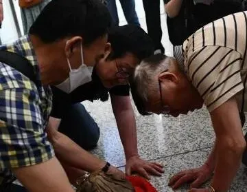 在郑州高铁站换乘的时候,刘德文突然双膝跪地,轻轻将书包放在地上,瞌了两个头,轻声说:“两位长辈,我们到郑州了,您们先休息休息,等下我们就去洛阳,马上就要到家了。”