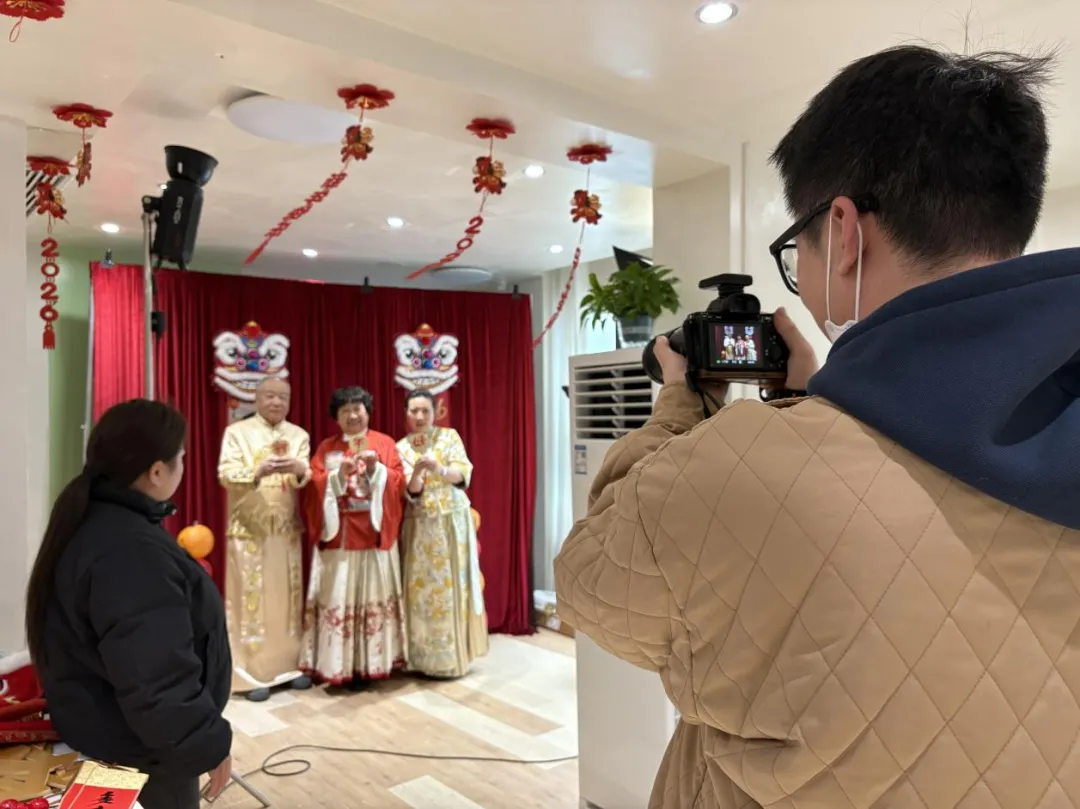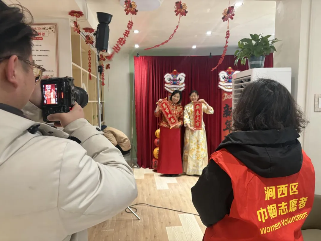 活动现场,“福”字背景墙喜气盈盈、红色幕布间灯笼闪烁、俏皮的马年玩偶点缀其中……社区还准备了中式服装、手写福字等氛围道具,供居民随意选用。随后,为大家拍摄了新年写真与全家福,用镜头定格温馨的团圆影像。(张雅鑫 文/图)