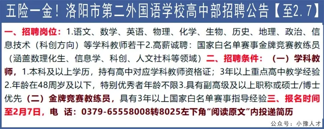 五险一金!洛阳市第二外国语学校高中部招聘公告【至2.7】