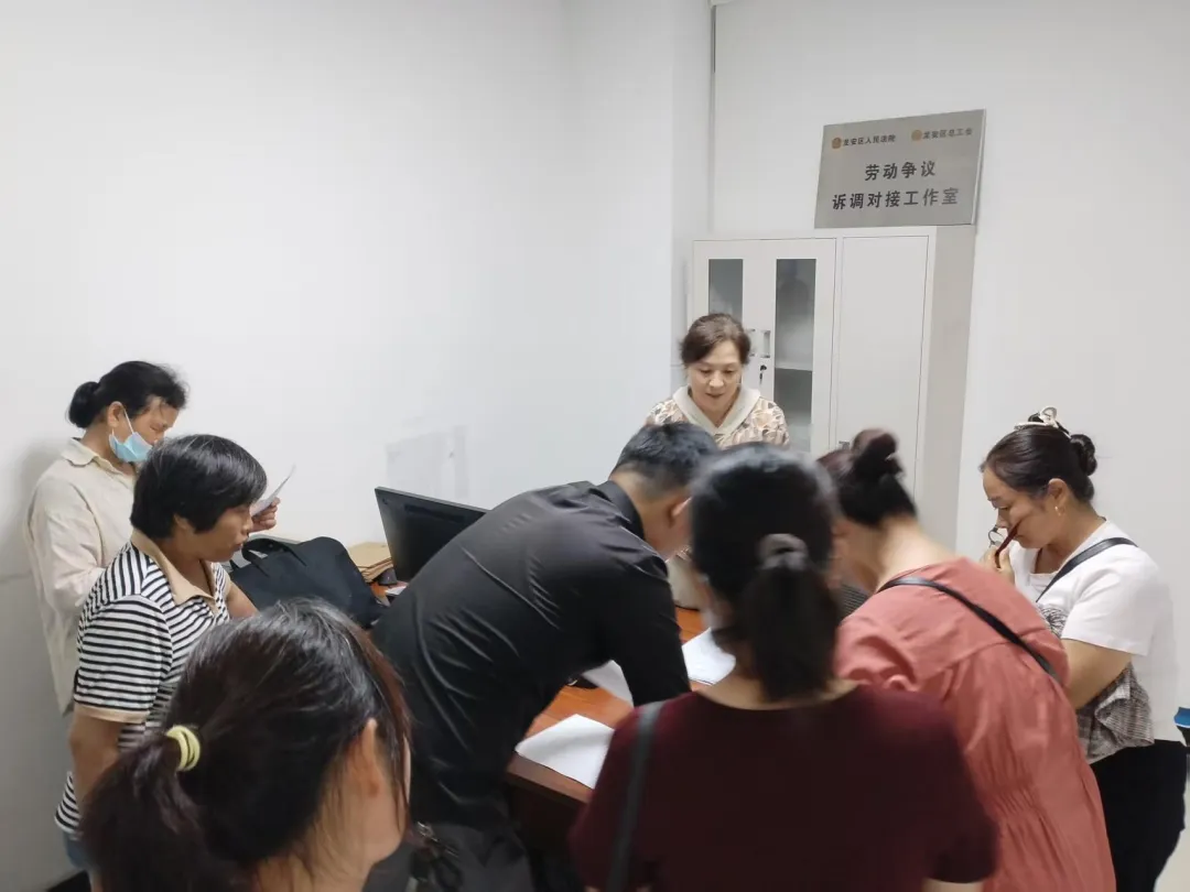 在龙安区法院立案庭设立“劳动争议诉调对接工作室”,选派经验丰富、热心调解工作的退休工会干部担任专职调解员,常驻法院。法院即时分流、调解员“接诉即办”。工会贴近职工、熟悉劳动关系的优势与法院的专业法律权威形成完美互补,为劳动争议的妥善解决奠定了坚实基础。