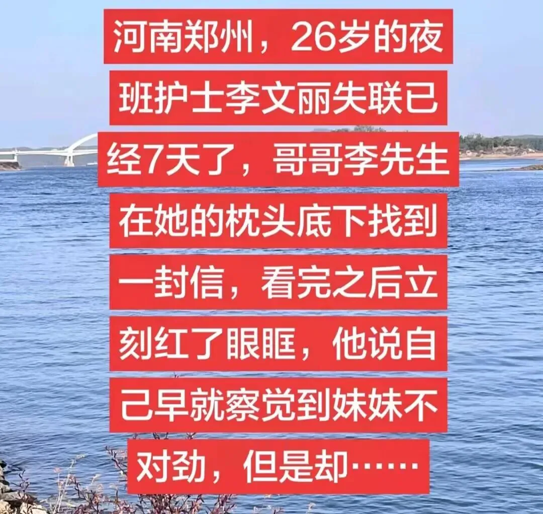 1月20日晚间,河南郑州悄然发生了一起悲剧,26岁的女孩李文丽离家出走,最后监控画面定格在北大学城贾鲁河附近,6天以后也就是1月25日下午,李文丽的遗体在河中被打捞上岸。