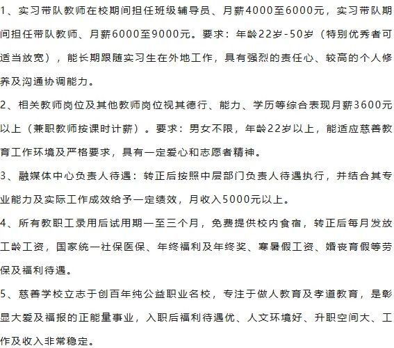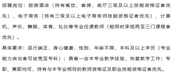 5、温馨提示:学校教学业务繁忙,本次招聘活动面试前不接受电话咨询(发送面试通知时会公布相关负责人的联系电话),请应聘者仔细阅读本招聘简章对学校进行深入了解,也可登录学校官方微信公众号,浏览学校详细的信息、报道、图片、视频进行了解,确保了解清楚后再投送简历及相关资料。本次招聘为春秋学期之间的人员补充,报名时间较短,录用时间较紧,请有意应聘者抓紧时间报名。