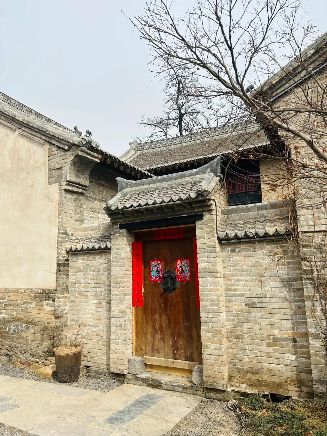 仔细看会发现,门窗上的木雕、砖雕细节超精致,刻着福禄寿纹样和花卉图案,每一刀都透着古人的匠心