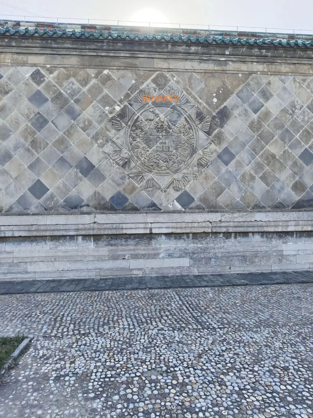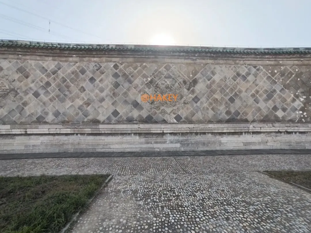 照壁呈“八字形”布局,总长度近70米。内侧满饰砖雕图案,技艺精湛、庄重典雅,是我国现存规模最大、纹饰最精美的砖雕照壁。