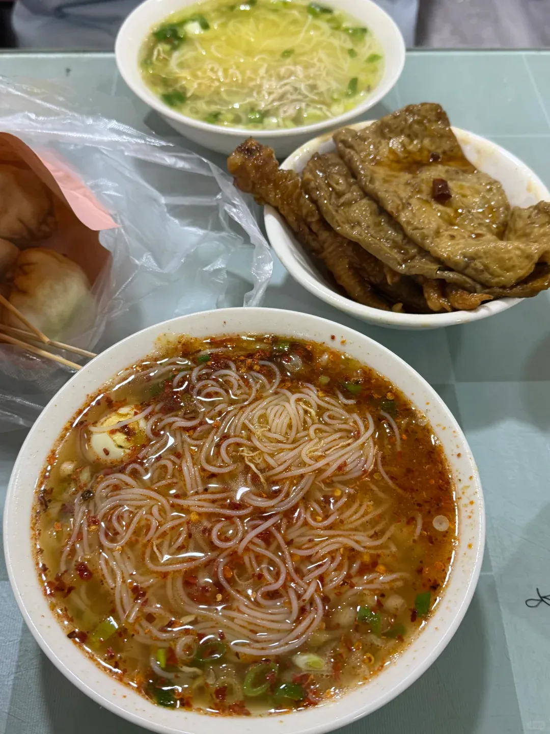 早上推荐豆腐脑配烧饼。驻马店的豆腐脑偏南,咸口打底,浇汁里有韭花香。再来一碗胡辣汤,呼噜两口,人暖了。午饭该吃“笨鸡炖粉条”,锅里放柴火慢炖,鸡油浮一层,粉条吸满汤,拿筷子一拨直顺嘴。晚饭去天中路夜市,铁板鱿鱼、羊肉串、酸辣粉一起冒烟。空气里都是咸香。要挑一道地道的,那就说“驿城焖子”。先用绿豆粉打浆,蒸成坯,切片下锅,外脆内糯,蒜汁一泼,香透人。做法不复杂:豆浆滤渣、静置成糊、蒸透、晾凉、切片、再回锅煎香。热的焖子一入口,躁气就退了。