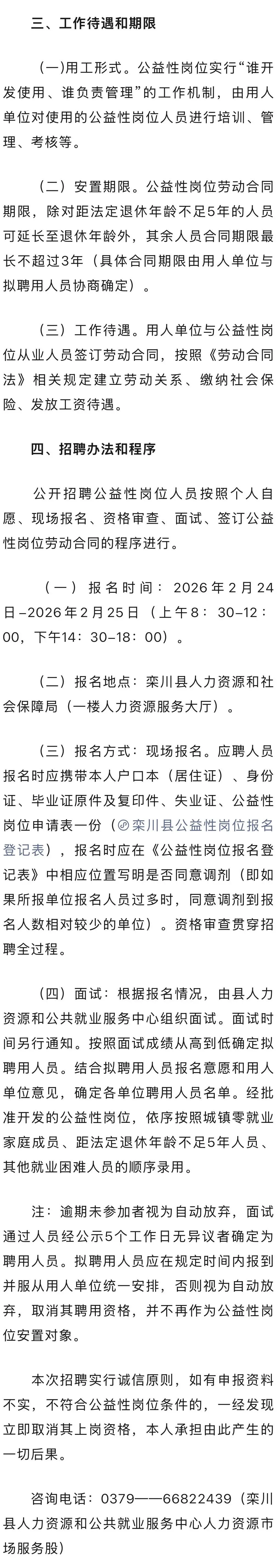 栾川县2026年公益性岗位招聘公告