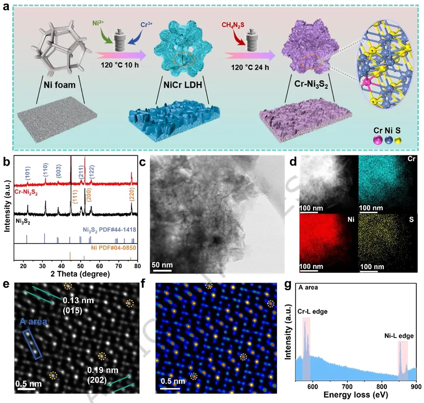 图1. Cr-Ni3S2和Ni3S2的UOR机制示意图