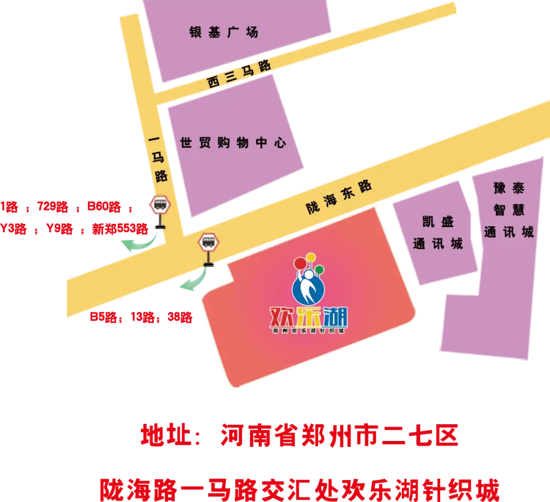欢乐湖商场总建筑面积约10万平方米。位于郑州火车站批发商圈。汇聚来自国内厂家、省内总代等全国各地针织内衣商家千余家。产品辐射中部地区多个省市,在河南周边拥有广泛的影响力。