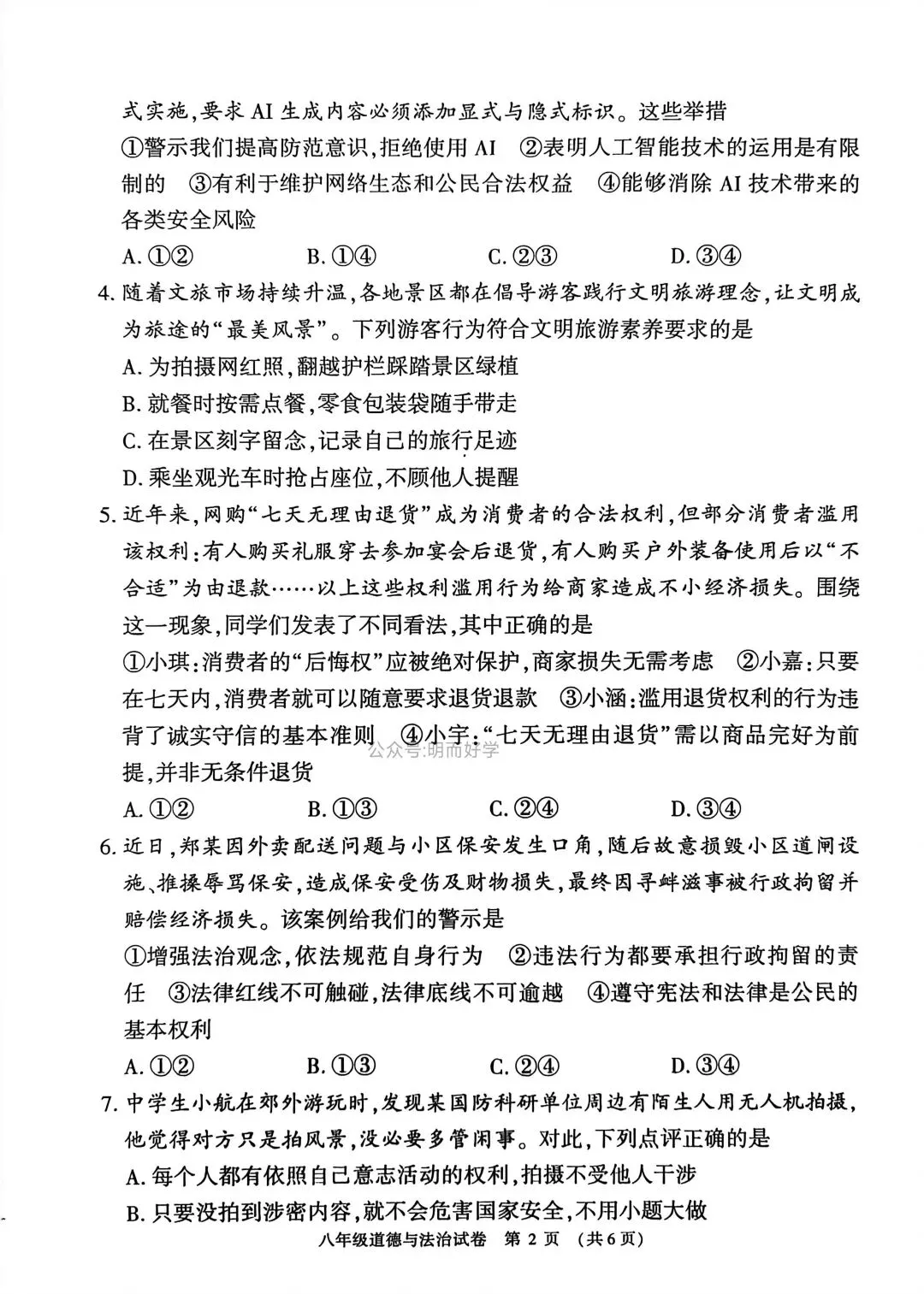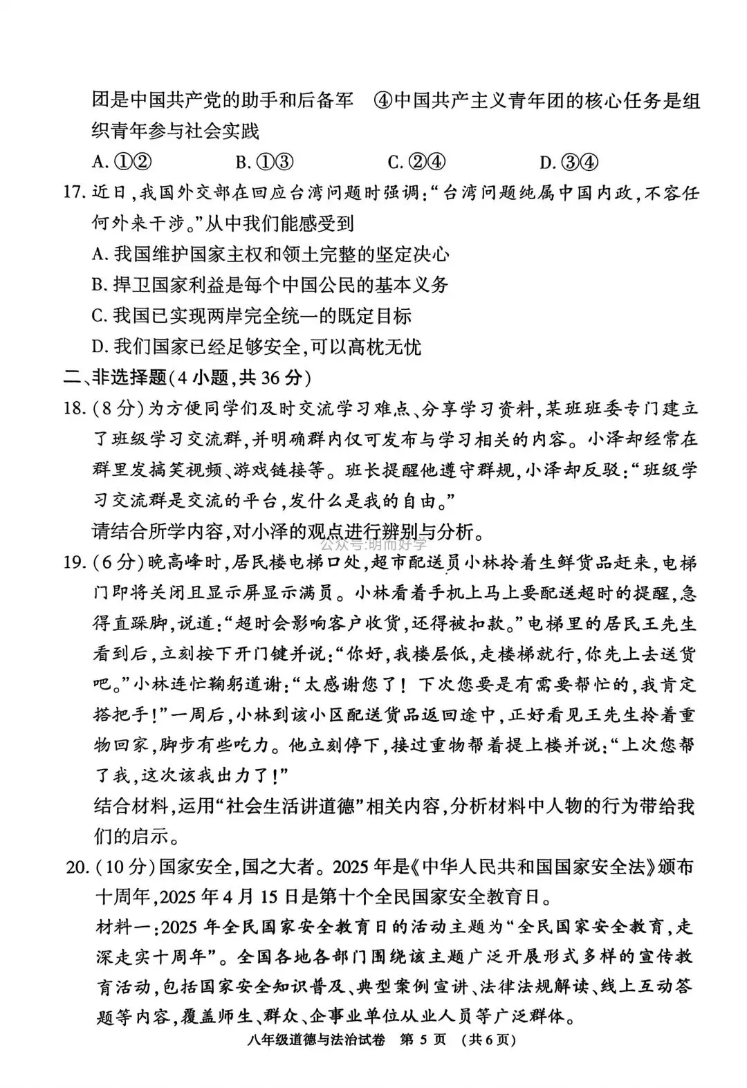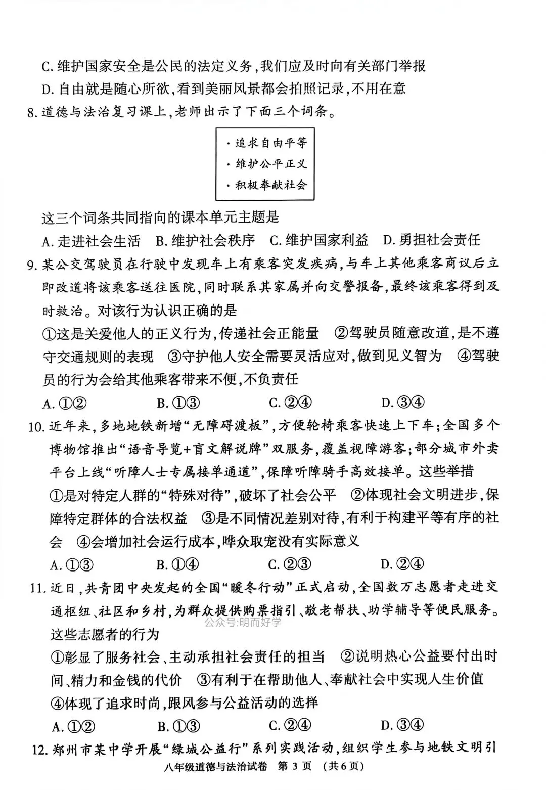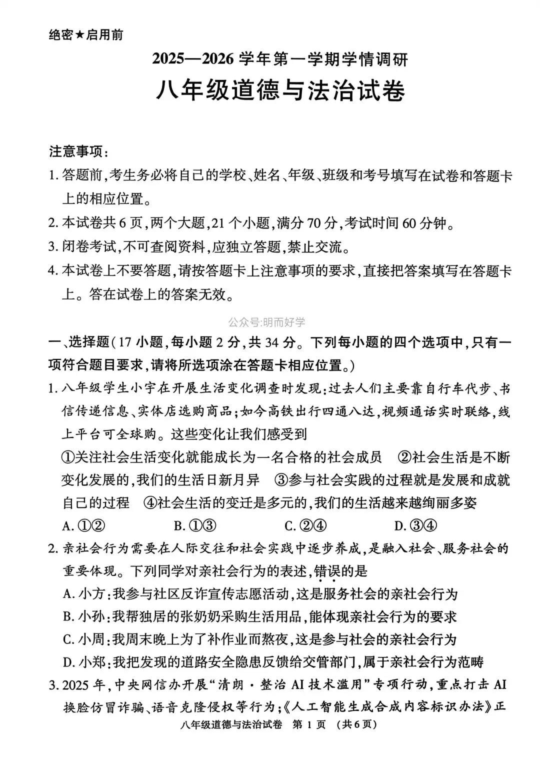>【八上期末】安阳林州市 2025—2026八年级上学期期末试卷+答案 (道法)