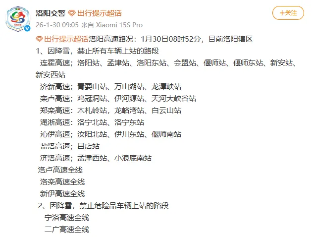 当前位置:首页>洛阳>洛阳多条高速已全线禁行