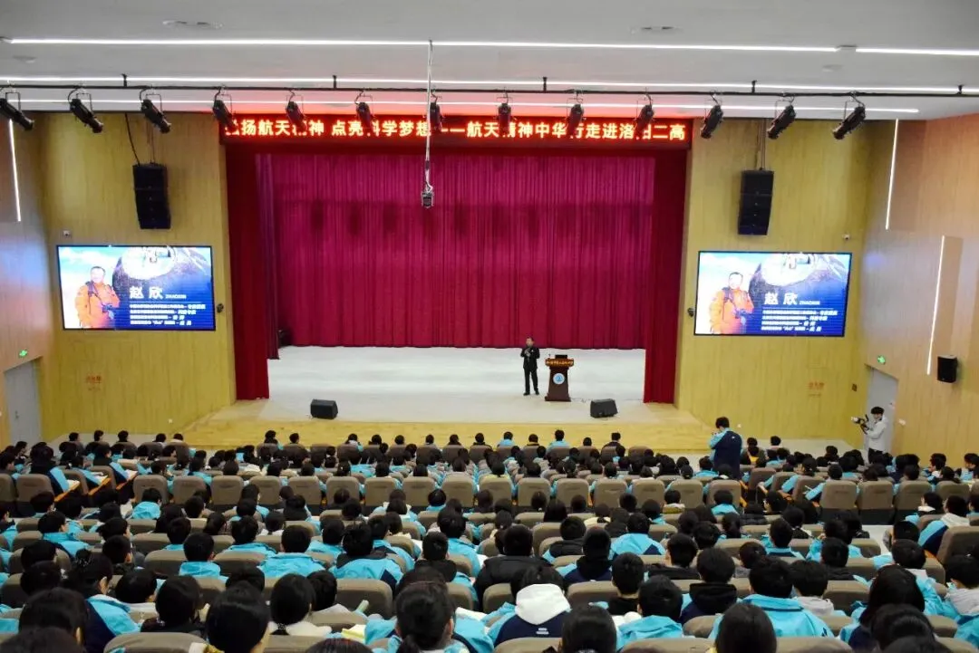 当星辰大海的征途与青春奋斗的航向相遇,便碰撞出最动人的理想火花。1月29日下午4:10,洛阳市第二高级中学大讲堂内座无虚席、气氛热烈,500余名陈冬班学子齐聚一堂,共同聆听由赵欣老师带来的《中国航天精神密码与青年使命》专题讲座,在航天故事中汲取力量,在精神传承中明确方向。本次讲座由杨启阳副校长主持。
