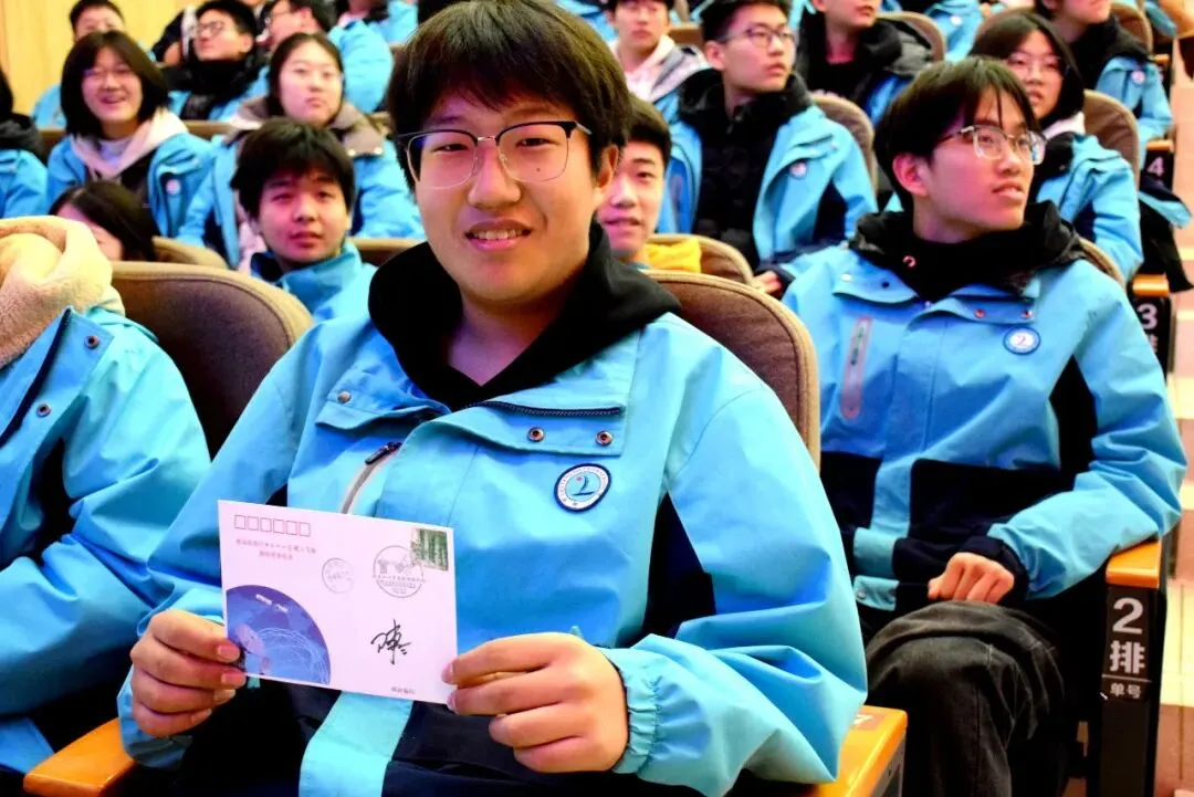互动环节气氛尤为热烈,成为讲座的一大亮点。赵欣老师主动向同学们提问,检验大家的航天知识储备,对回答准确的学子,他亲手赠送珍贵的航天员签名封作为奖励。这些签名封承载着航天人的祝福与期许,是连接青少年与航天梦的珍贵纽带,拿到礼物的同学们脸上满是自豪与喜悦。