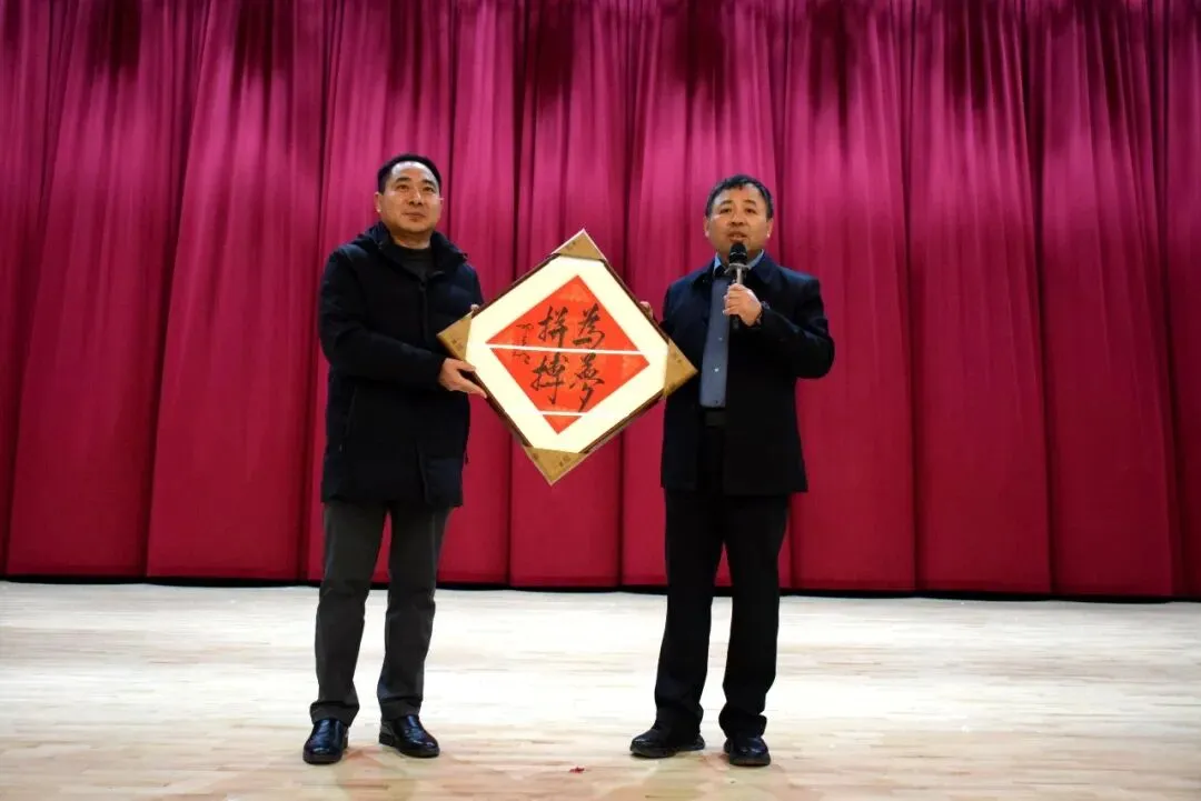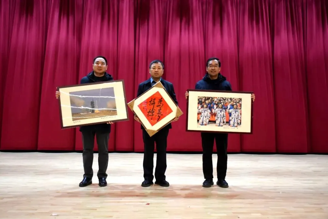 讲座尾声,赵欣老师向学校赠送了三份意义非凡的珍贵礼物——航天员邓清明亲笔书写的《为梦拼搏》书法作品,以及他本人拍摄的陈冬执行神舟二十号任务出征和飞船发射升空时的照片。邓清明的书法字体富有弹性与韧劲,笔墨间尽显航天人的家国情怀;而那张出征照片,定格了洛阳二高优秀校友陈冬肩负使命、奔赴苍穹的坚毅身影,与学校开设陈冬班、深耕航天特色教育的理念高度契合。这三份礼物不仅是航天精神的具象传承,更彰显了航天人对青少年一代的殷切期望,将被学校妥善珍藏,成为滋养学子成长的精神财富。