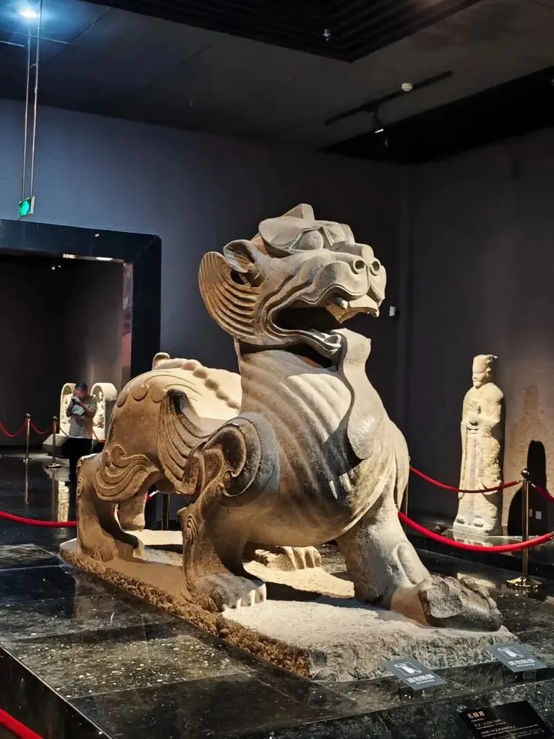 洛阳辟邪为东汉时期石雕文物,出土于河南洛阳洛河河岸,出土时为一对,另一只藏于中国国家博物馆,是汉代陵墓神道石刻的典型代表。通过流畅的线条与动态的比例来塑造其形象,展现了东汉艺术对神兽形象的浪漫化演绎。我国现存最大的石辟邪,重达8吨,由整块青石雕刻而成,气势雄浑,是汉代陵墓神道的守护神兽。