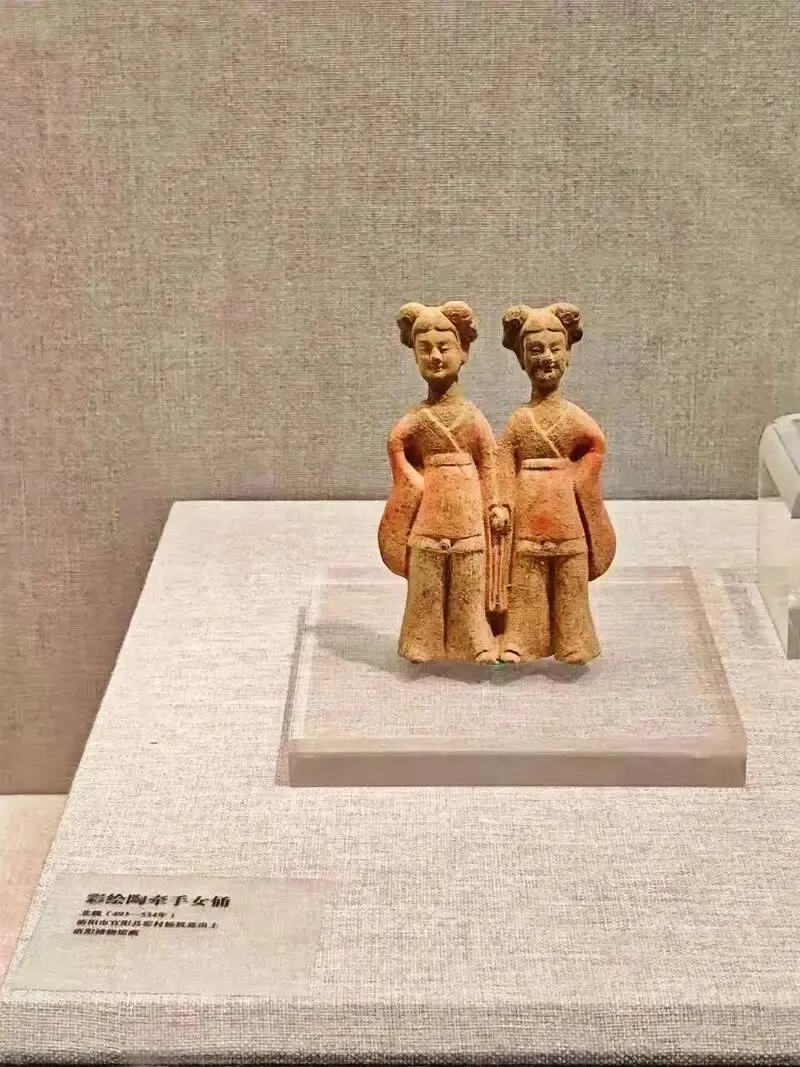 除了这几个代表文物之外,洛阳博物馆还有几个文物“显眼包”,很是生动有趣。比如时代姐妹花,永远不分家的“彩绘陶牵手俑”,还有古代人自己的“Labubu”铜当卢,还有给你点赞的武陶俑都非常生动有趣。