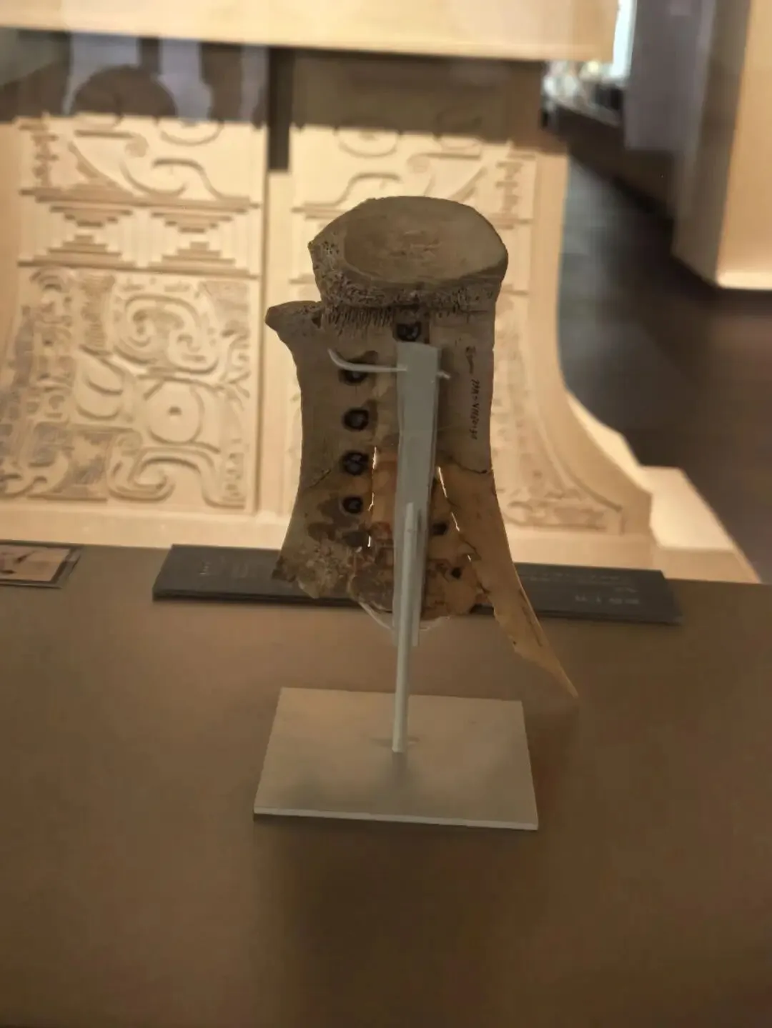 “一片甲骨惊天下”的那片甲骨跟一片镶嵌了绿松石的甲骨放在一处,楼上有一层,有硕大的一个展厅里都是甲骨,真的是很惊叹,排放着一片片甲骨,上面或多或少的都有文字,或许记录着询问收成好不好,或许记录着询问这次出征是否可以凯旋归来~~~
