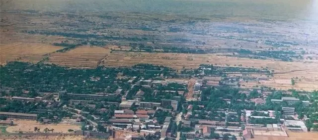 这个角度少见,大片的麦田和成片的树冠连成毯子,楼不高,楼与楼之间是空地,是晒麦场,是孩子们的踢毽子地方,现在看高楼林立,那时的天更阔.