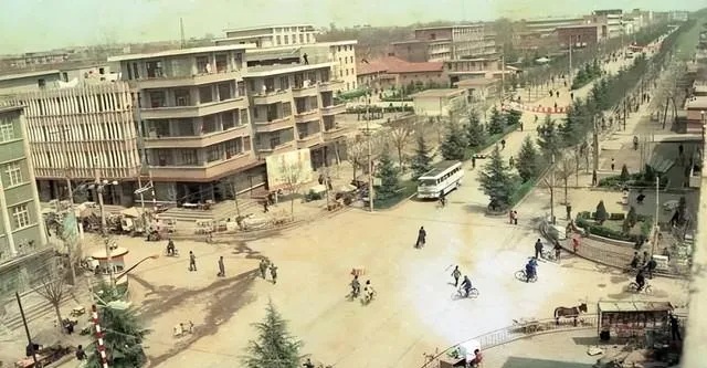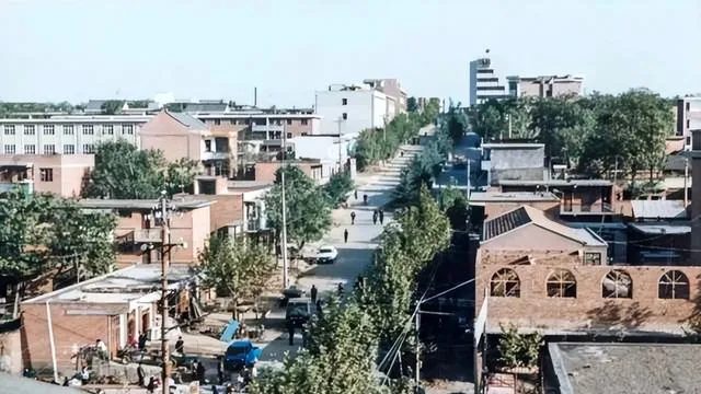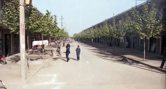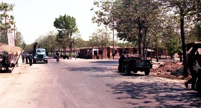 黑白里路还坑洼着,独轮车推着走,到了彩照时代,水塔和矮房子排成了背景,路口中间立着红白墩子,秩序慢慢有了样子,现在这地方再去,怕是要对着老照片比划半天才认出来.