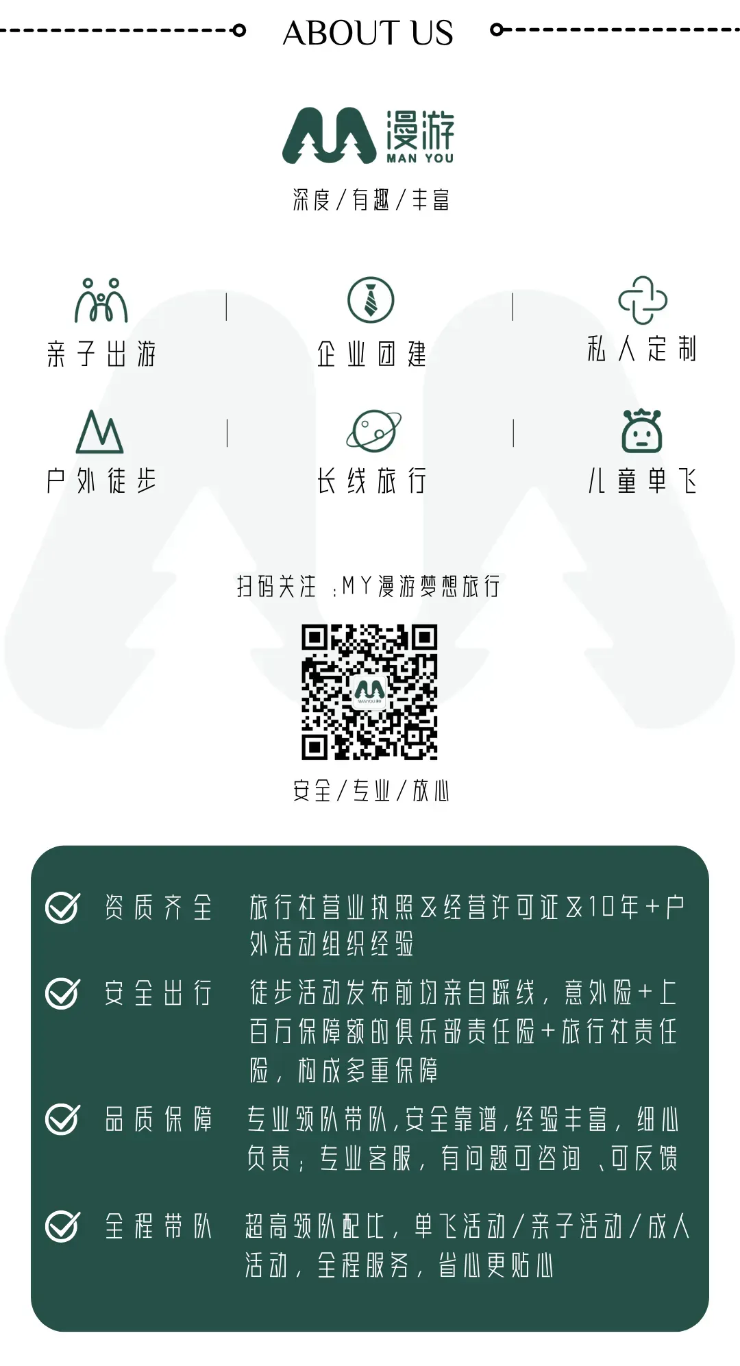 成团说明:每期8人成团,大小一起25人满团(人数或略有浮动1-2人,人少则用商务车出行);