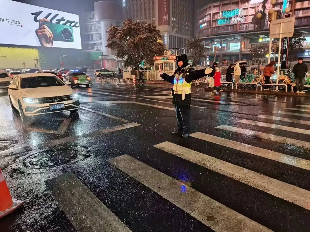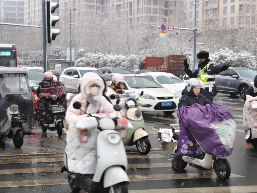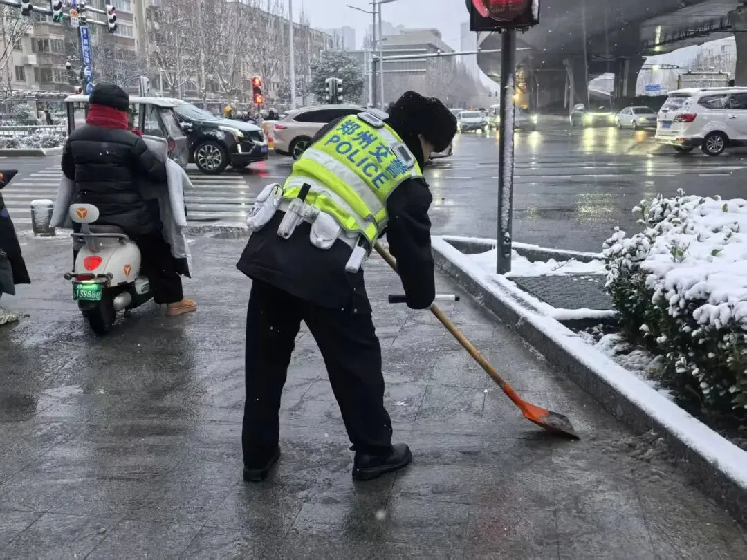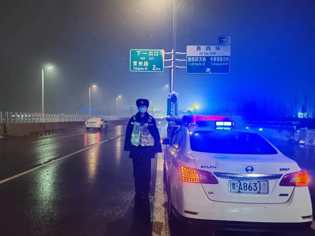 29日16时左右,西部山区和郑州市区开始陆续降雪,郑州交警按照统一部署要求,聚焦降雪时段及晚高峰关键节点,科学调配警力资源,“全员全警上路、全域覆盖管控”,执勤警力将重点放在驻守主干道、高架桥梁、隧道匝道、国省道等易积雪结冰路段,以及学校周边、医院、车站、商圈等人员车流密集区域,通过定点值守与动态巡逻相结合,开展道路疏堵保畅、安全警示提醒、应急救援处置等工作。