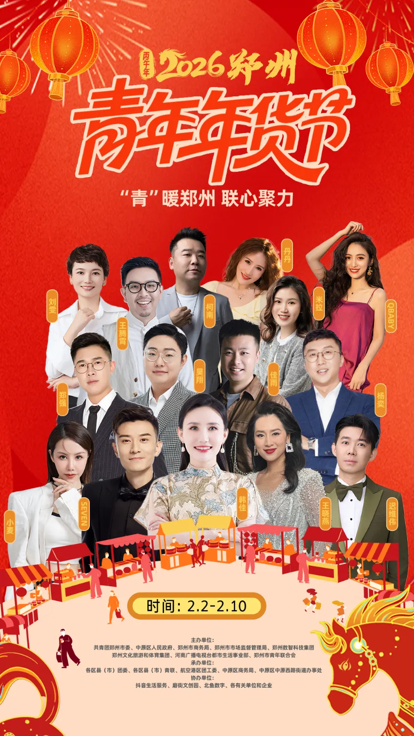 为落实市委经济工作会议精神,助力打造国际消费中心,释放青年群体消费潜力,发挥青年在消费市场中的生力军作用,全面激发消费市场活力,共青团郑州市委、中原区人民政府、郑州市商务局、郑州市市场监督管理局、郑州数智科技集团、郑州文化旅游和体育集团、河南广播电视台都市生活事业部、郑州市青年联合会联合举办“‘青’暖郑州 联心聚力”2026郑州青年年货节。