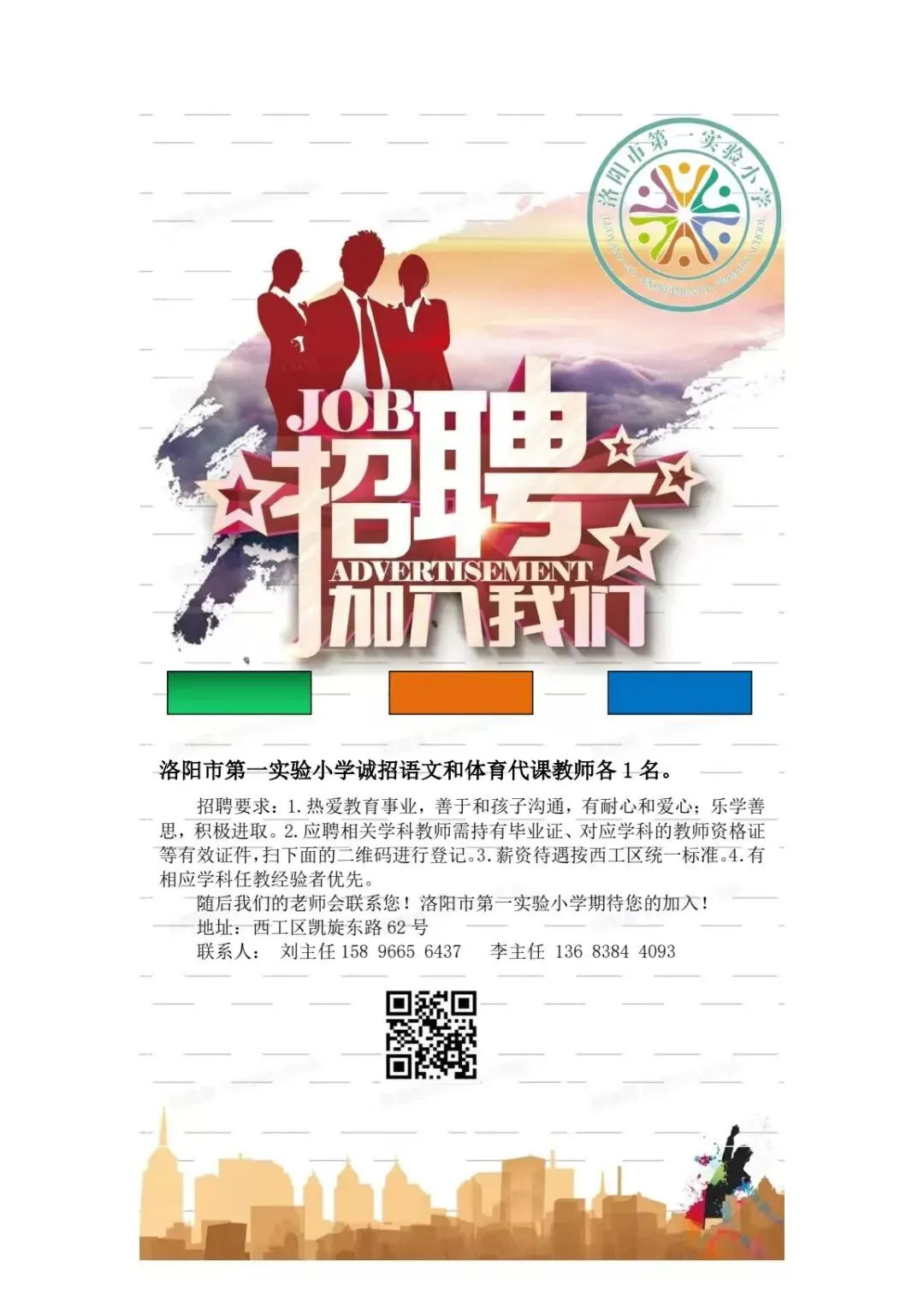 洛阳市第一实验小学诚招语文和体育代课教师