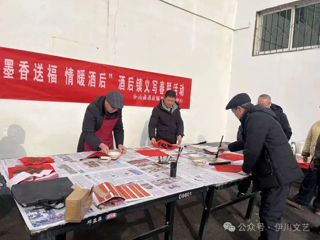 1月28日,伊川县在酒后镇文化服务中心举办“墨香送福、情暖酒后”义写春联活动。
