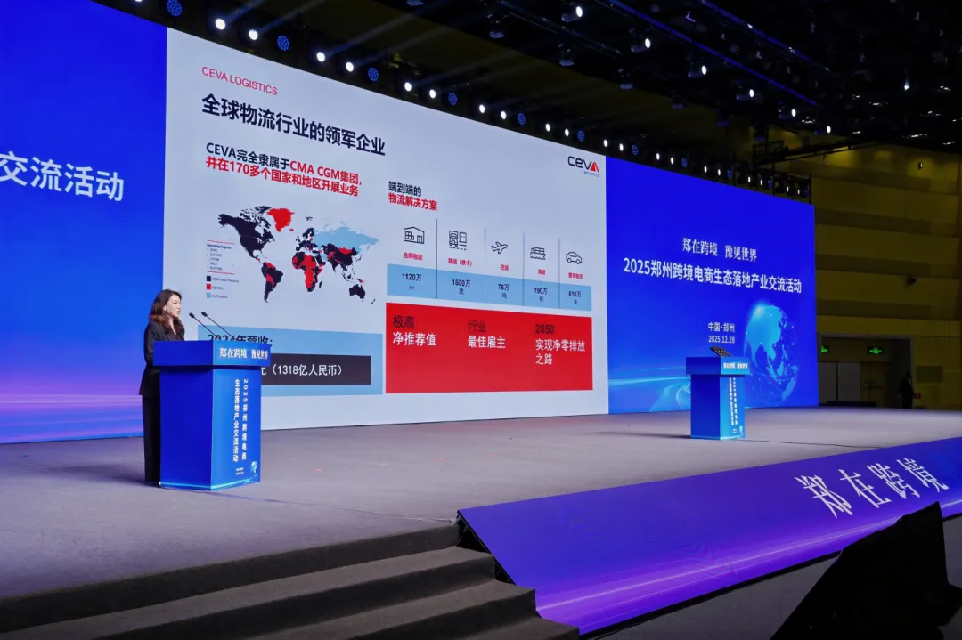 2025 年 1228 郑州跨境电商生态大会现场,全球物流领军企业宏鹰国际货运(CEVA LOGISTICS)重磅亮相,分享其扎根郑州、赋能跨境贸易的亮眼成绩单,引发行业广泛关注。
