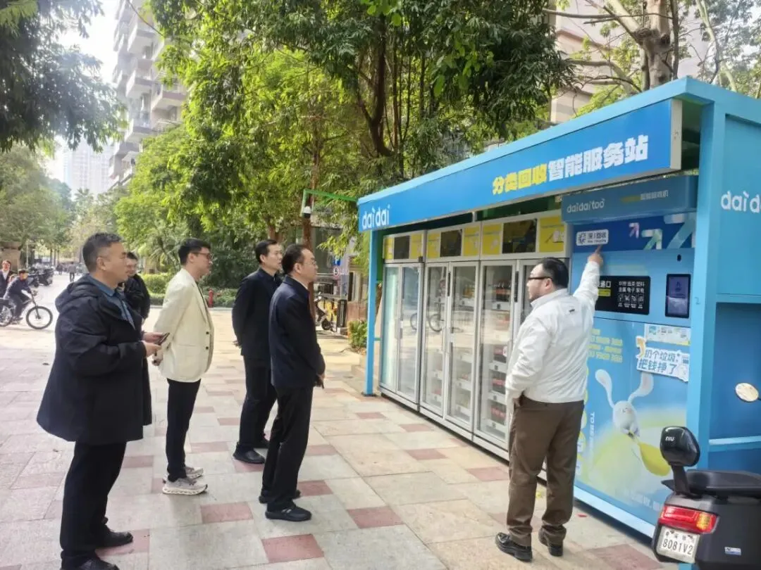 调研组首站来到改革开放前沿阵地——深圳市,同深圳联泰再生资源有限公司进行项目对接。实地考察了奥林华府小区第二代智能回收箱、吉祥里“以车代库”回收点,听取企业详细介绍联合政府、街道、小区参与深圳龙岗区再生资源体系建设情况,智能投放柜与积分兑换站升级、建设“以车代库”回收点、选择运营主体、及时清运响应、数据纳统的主要做法和措施。在深圳联泰再生资源有限公司,调研组与深圳联泰再生资源公司团队、洛阳市政府驻深圳招商办事处进行了座谈,就联合合作开展再生资源回收体系建设、回收站点空间规划、网点建设管理、争取多部门协同支持进行了交流,并达成初步意向。