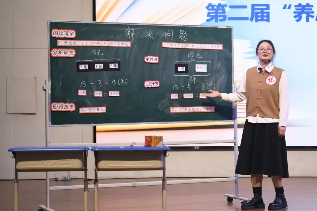 为锤炼青年教师教学基本功、搭建专业成长交流平台,一实小教育集团第二届“养成杯”青年教师素养大赛(数学)于今日在展览路分校圆满落幕。本次大赛以赛促研、以赛促教,各位青年教师同台竞技、各展风采,用扎实的专业功底、新颖的教学思路和饱满的教学热情,尽显锐意进取、朝气蓬勃的青春底色与育人担当。