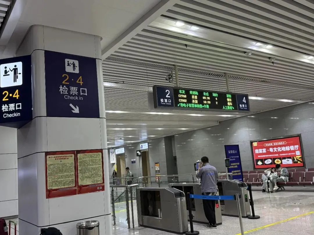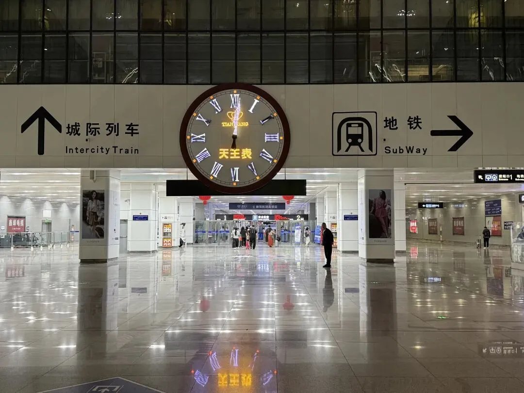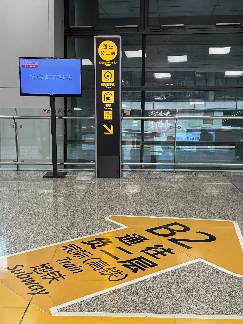 顺着标识,很快就能找到乘坐城际高铁的入口,和地铁一样,都在负二层。