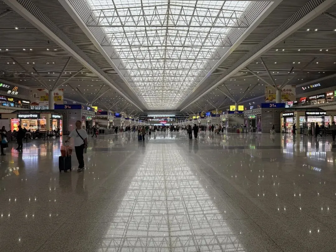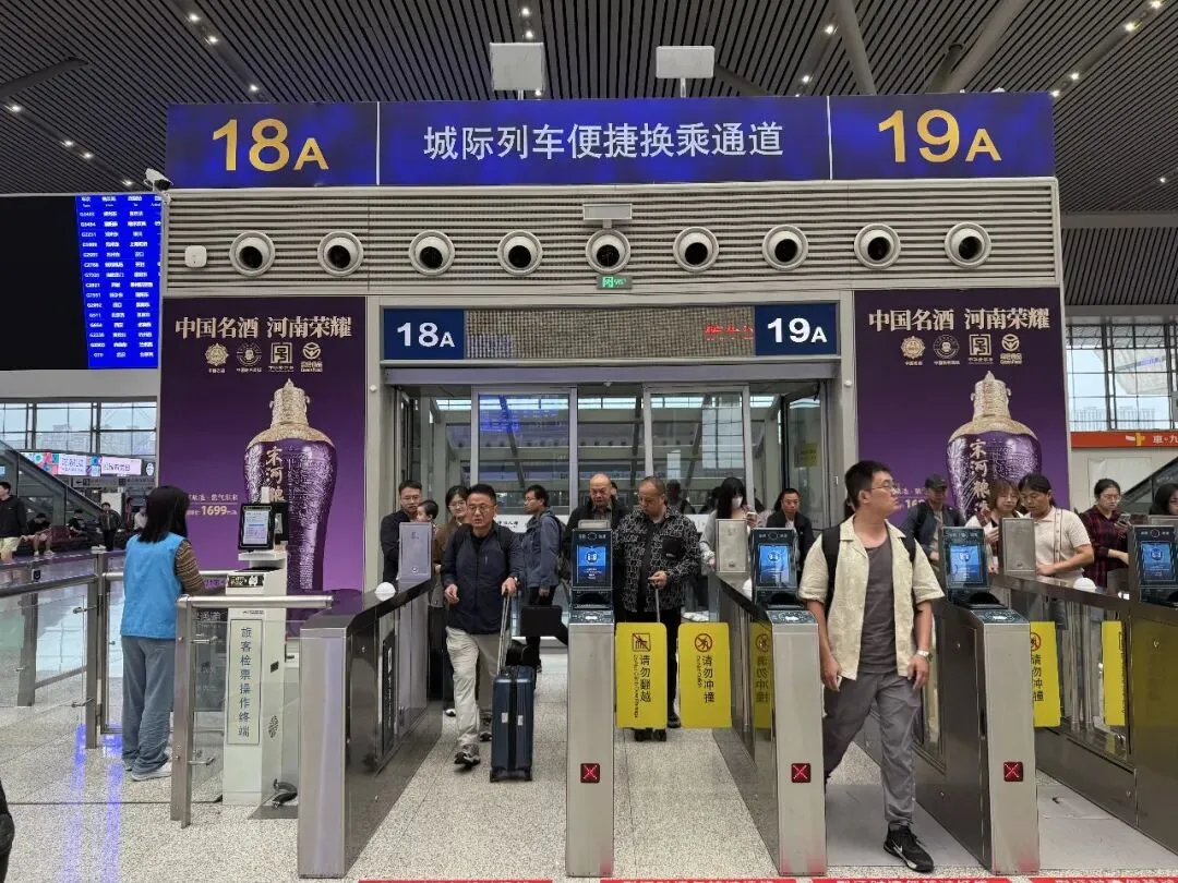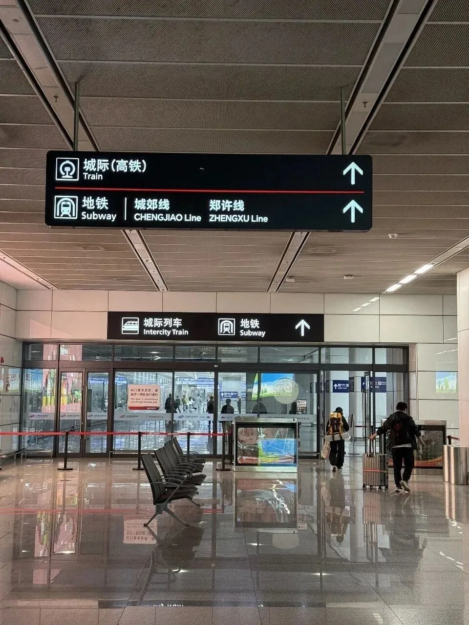 9点左右抵达郑州新郑国际机场,我们坐的这班飞机郑州是中转,终点是乌鲁木齐。没有托运,快速下飞机,按照沿途标识直冲城际高铁(在负二楼)。我是在出发前就买好了城际高铁票,结果我们比原计划更早到,时间还很富裕,果断改签。在手机APP上改成更靠前的班次,这会儿余票多,轻松改签,于是整体行程时间又提前了一点点。