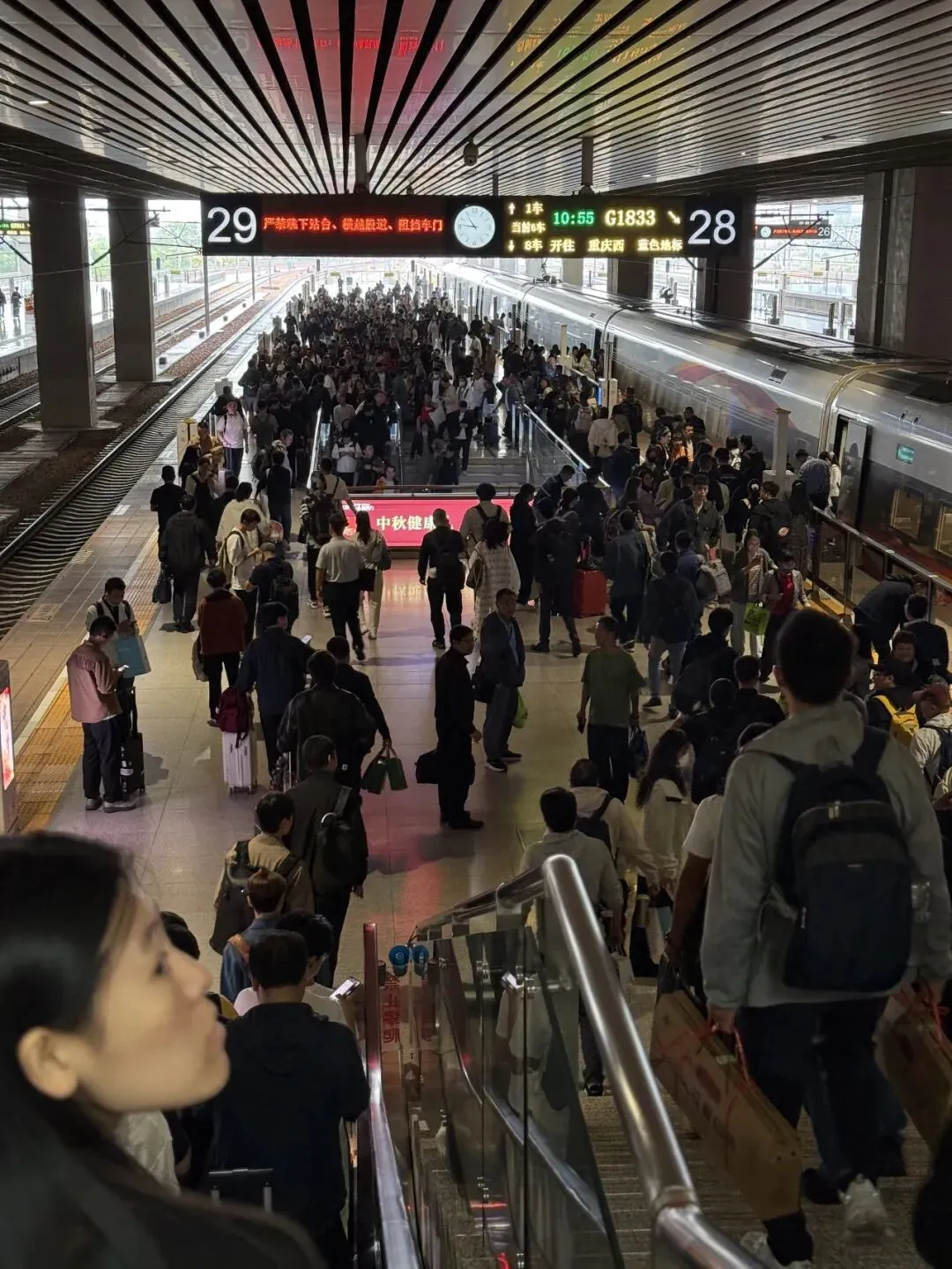 从车厢出来,迎面就是换乘点,我们爬爬爬爬,最后10分钟不到搞定站内换乘。